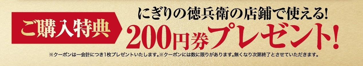 さらに期間中お買い上げのお客様には「にぎりの徳兵衛」の各店舗でご利用いただける「200円券」をプレゼントいたします。お仕事や学校帰り、お買い物ついでに、ちょっとした自分へのご褒美に、家族へのお手土産に、是非お立ち寄りください。