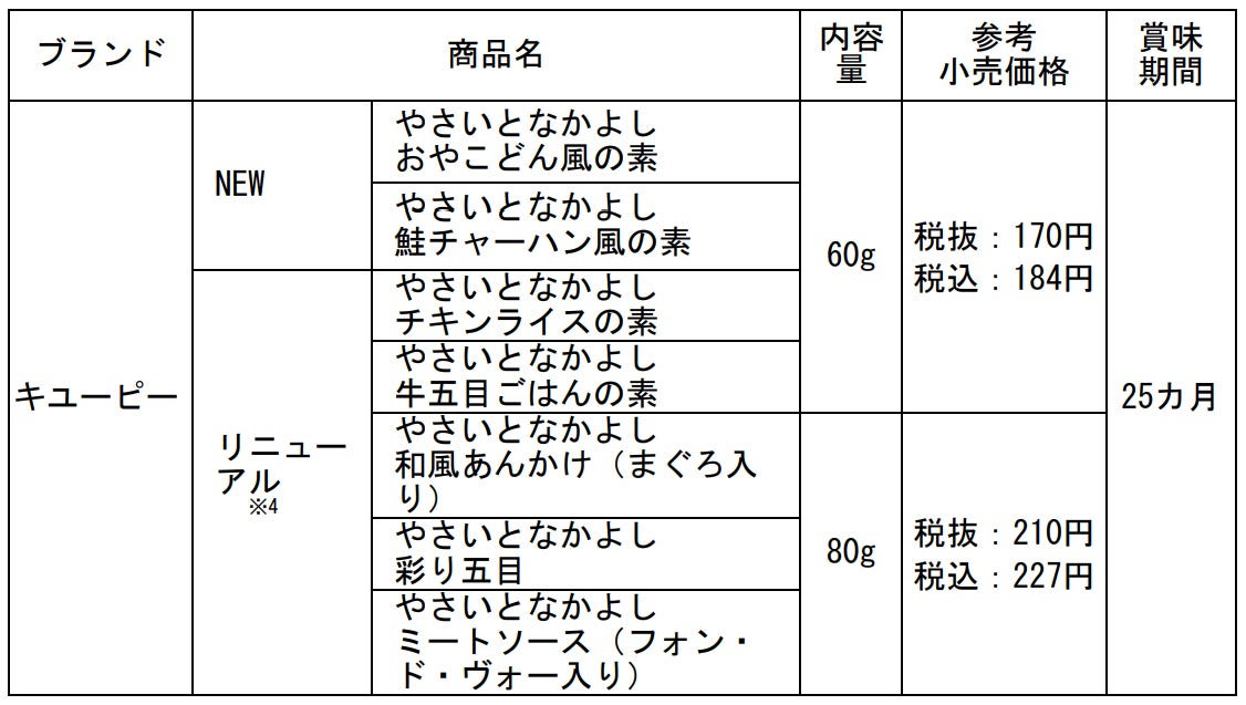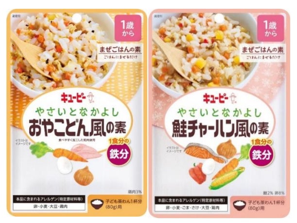 幼児食 キユーピー 「やさいとなかよし」シリーズ「おやこどん風の素」「鮭チャーハン風の素」を新発売。まぜごはんの素は計4品のラインアップに。