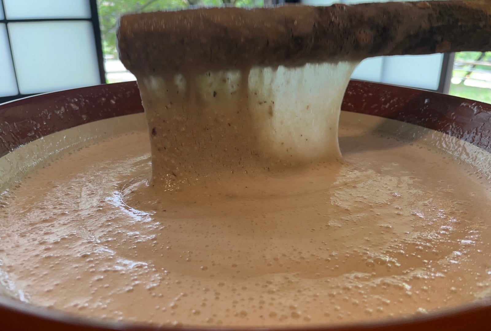 冬ならではのジビエ鍋を自然薯と合わせ、茅葺屋根のおうちで囲炉裏で暖をとる、至福の夕食です。