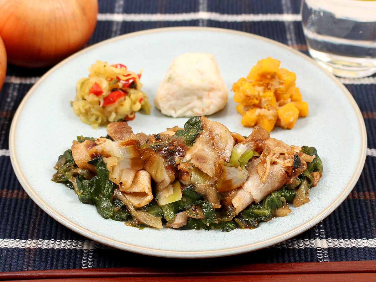 食べ応えのある豚バラ肉と、野菜にたっぷり絡めて食べてほしい一品です。