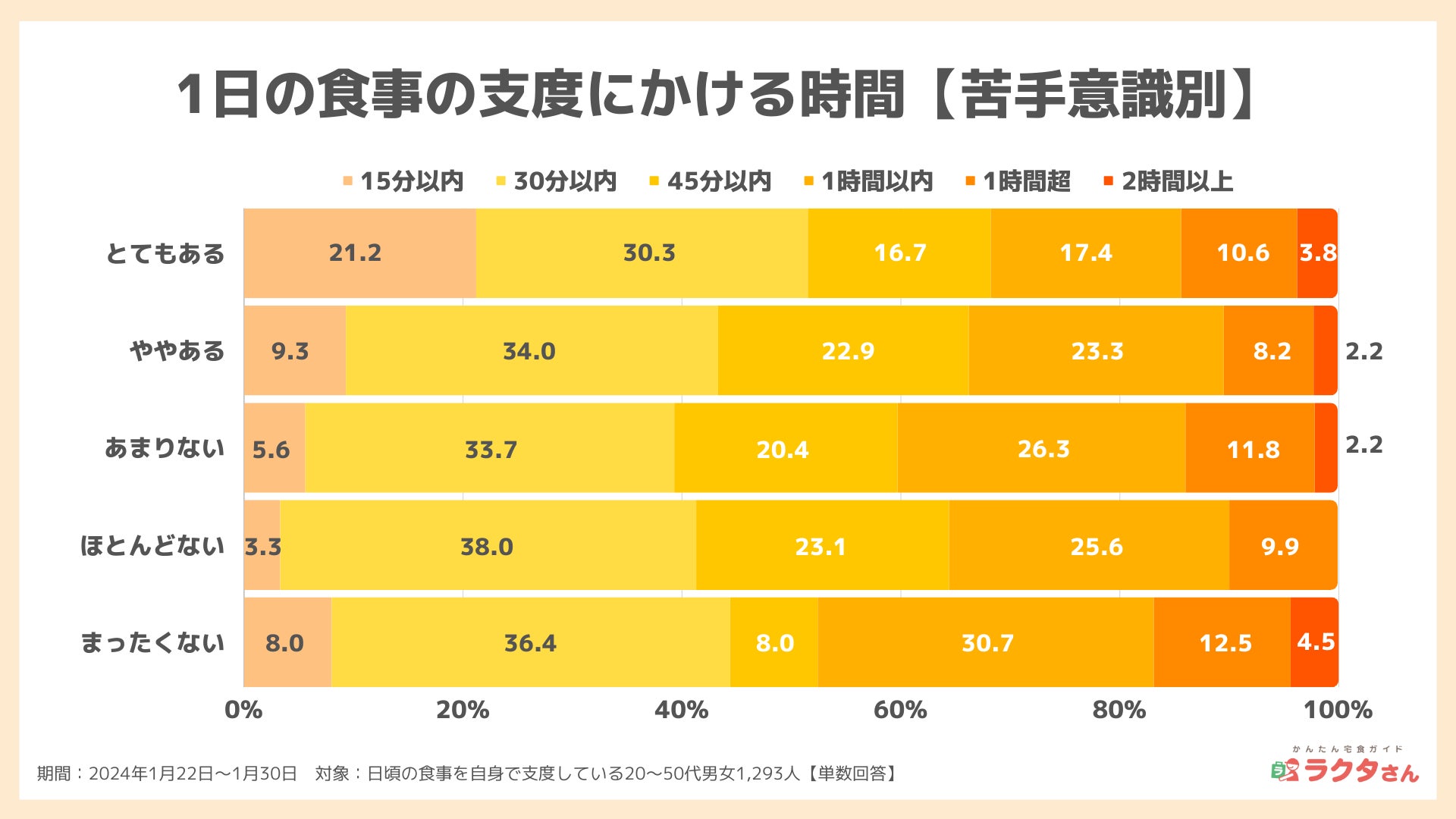 ミールキット利用実態調査 食事作りの悩みは「時間」、利用者の約6割がタイパを意識(かんたん宅食ガイド ラクタさん調べ)