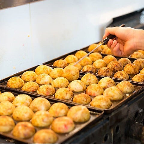 本場大阪のたこ焼き屋お店のスタッフがたこ焼きを焼いてくれます。