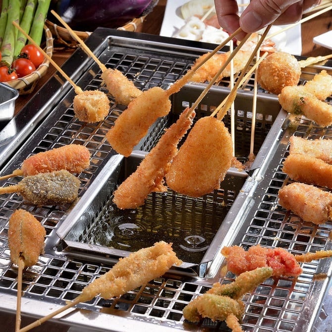 ・串カツの5本セットはお店ごとに内容が変わります。※ドリンクはついていませんので各自にてご購入いただきます。・お店によって営業時間などは予告なく変更する場合がございます。詳しくは各店舗にお問い合わせください。・各店舗予約なしでOKです。混雑時はお待ちいただく場合やご希望のお店に入店できないがございます。