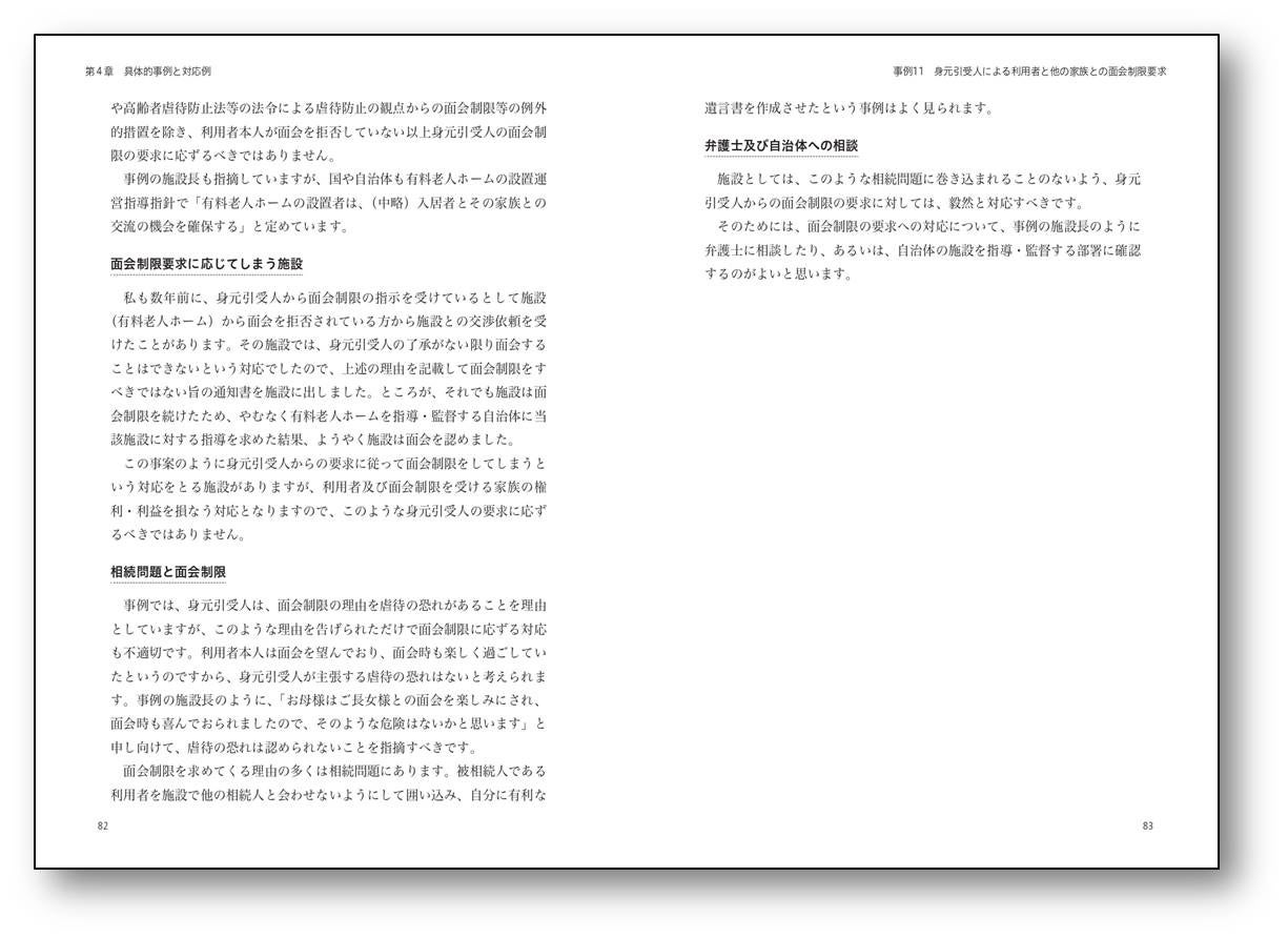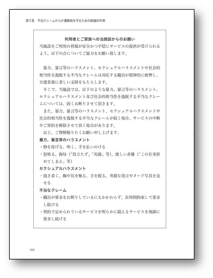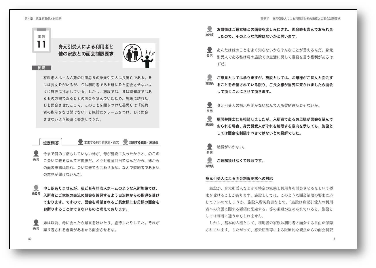 本書は、トラブルに発展しないよう適切に対処する方法から、発展した際の組織的対応まで、介護現場で実際に起きている事例とその対応例に基づき解説した書籍です。