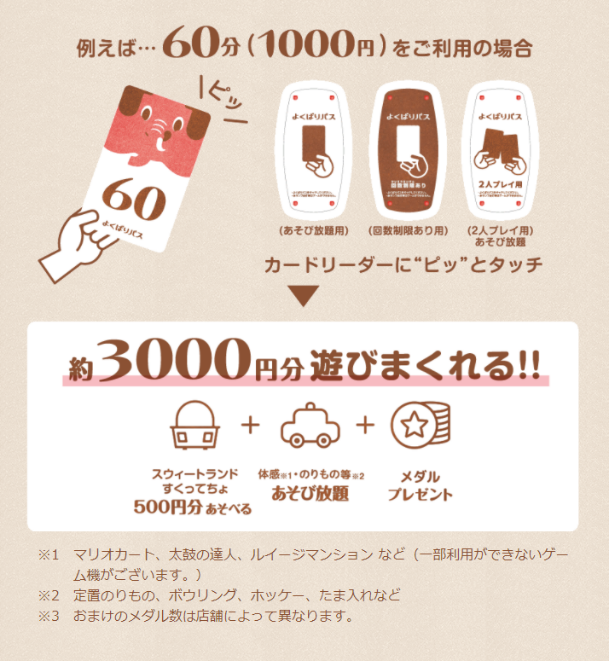 - 時間内定額で遊び放題 「よくばりパス」