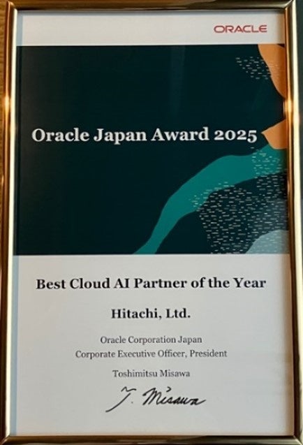 日立、日本オラクルのパートナー表彰においてBest Cloud AI Partner of the Yearを受賞