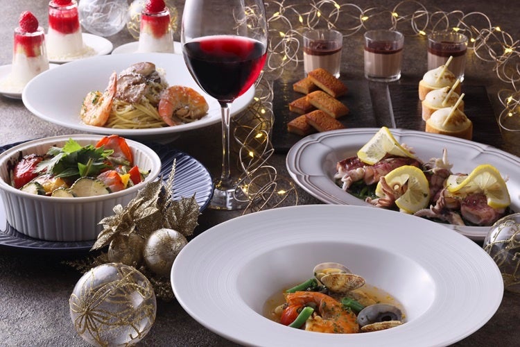 本格的なイタリア料理をビュッフェスタイルで楽しめる「イタリアンダイニング ベルラーゴ」のクリスマスメニューは、この時期限定で“近江黒鶏もも肉のコンフィ”やパスタ“ポルチーニ・エ・ガンベロ”をご用意。見て楽しく、食べて美味しいデザートまで、お好きなメニューをお召し上がりいただけます。開放的かつクリスマス装飾のきらびやかな店内で、聖なる夜をお過ごしください。