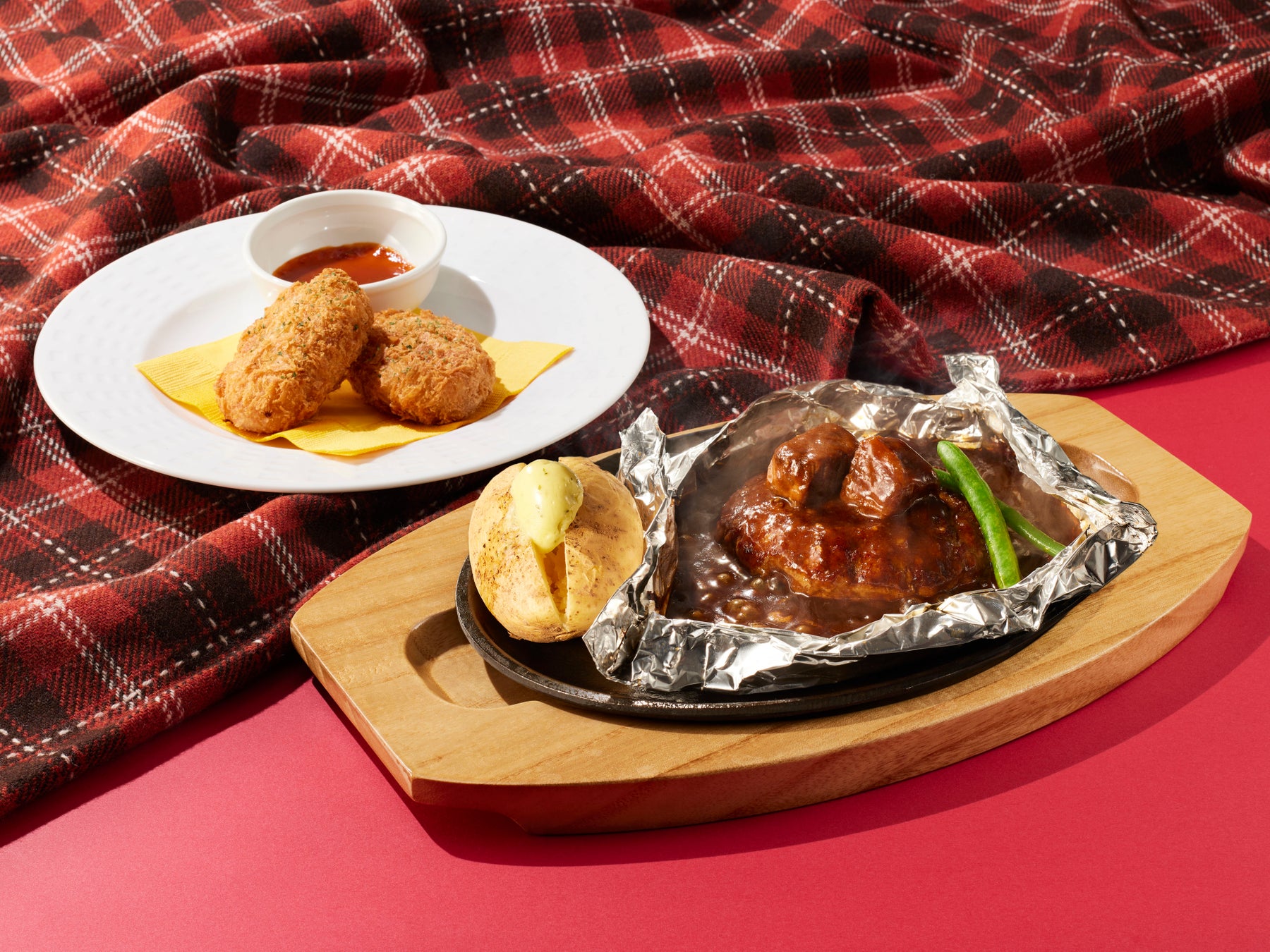 ココスの看板商品である“包み焼きハンバーグ”をより一層楽しんでいただけるよう、春に登場したアレンジメニュー“追加サワークリーム”に加え、“カニクリームコロッケ”、“温泉玉子”の2つが新登場します。いつもの“包み焼きハンバーグ”を、ちょっぴり違う味わいでお楽しみください。