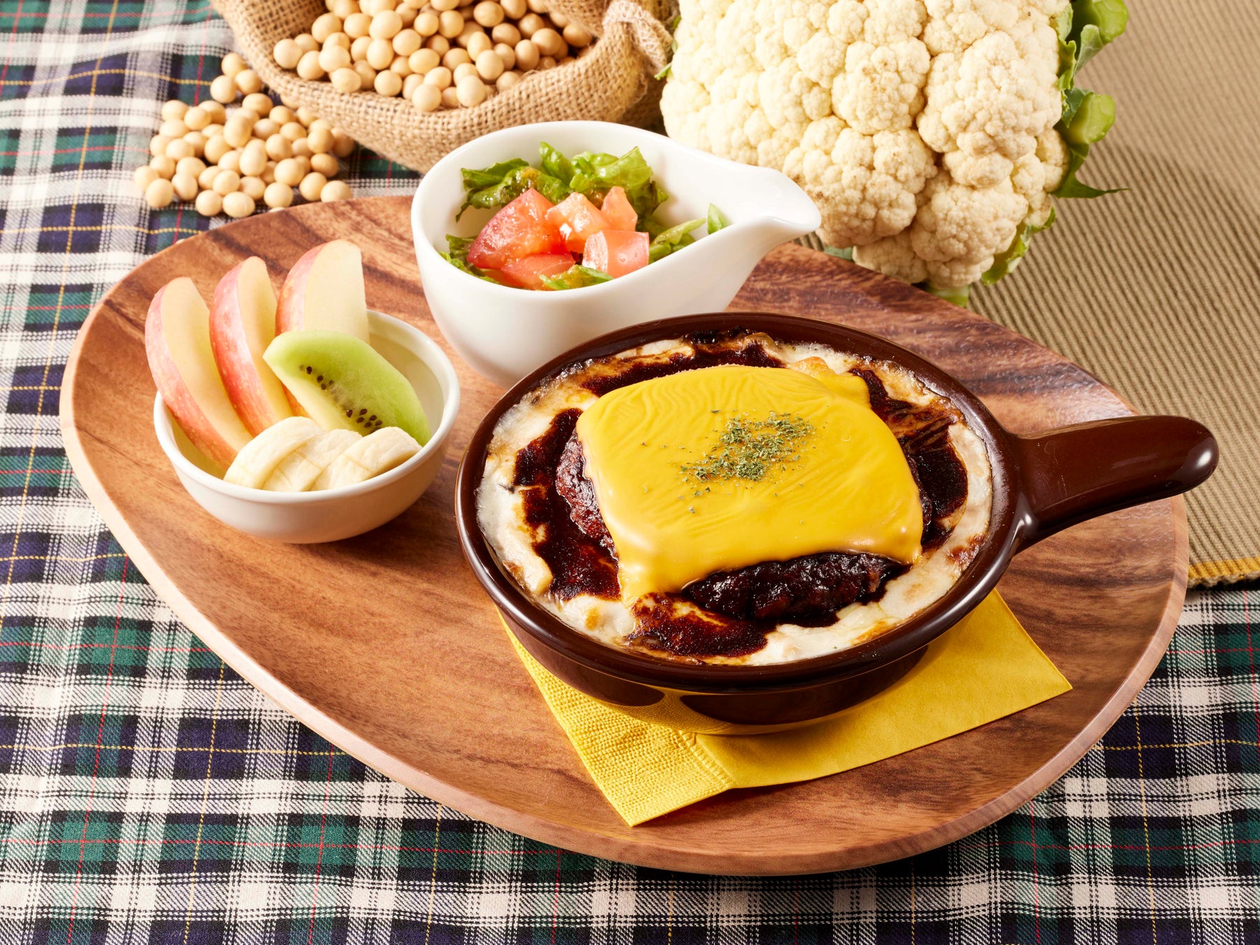 大豆ミートハンバーグとカリフラワーライスのドリアプレート