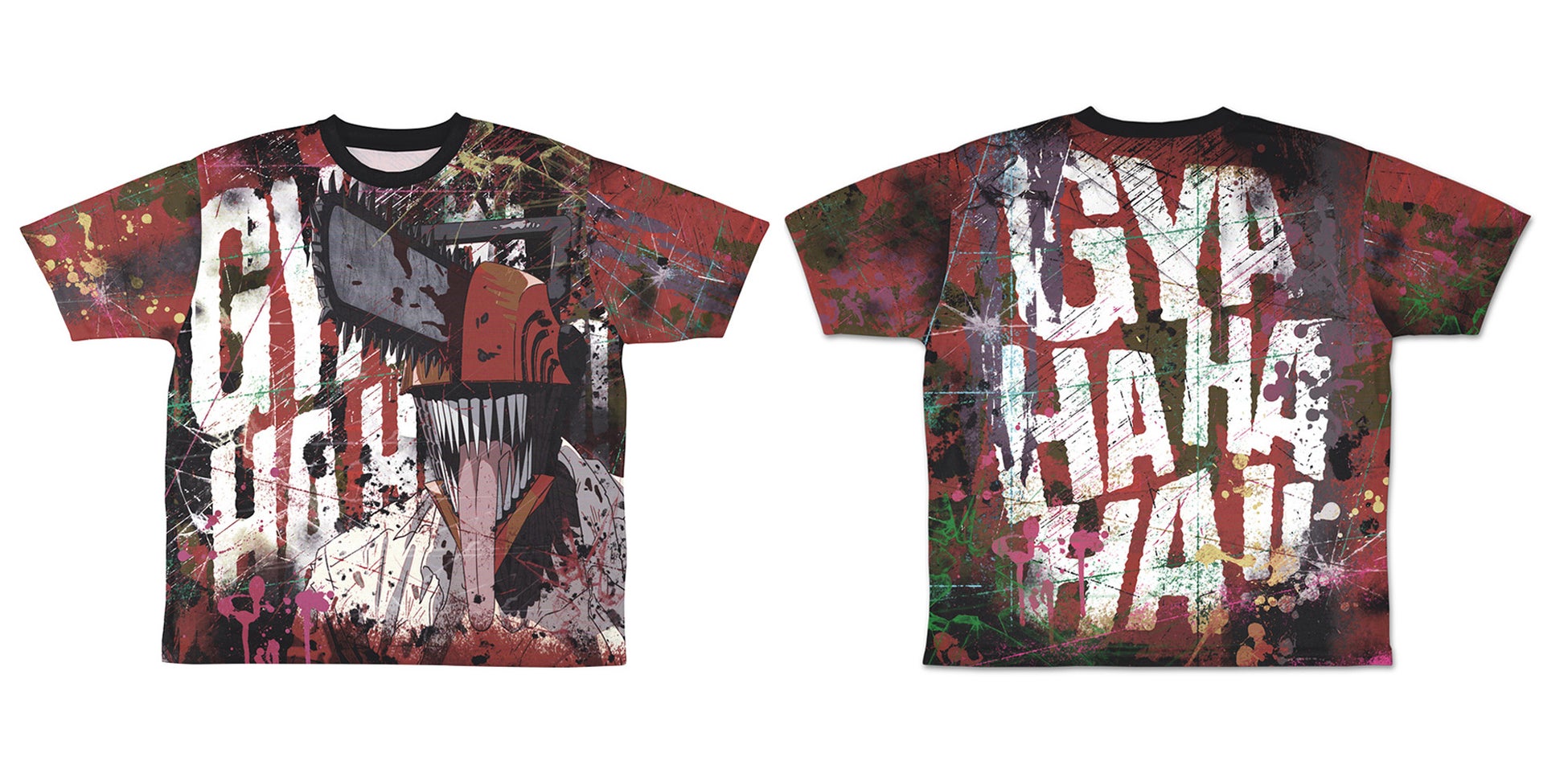 | 商品名 チェンソーマン両面フルグラフィックTシャツ 発売日 2023年11月上旬 価格 6,930円(税込) サイズ:S/M/L/XL 素材:ポリエステル100% 暴れまくるチェンソーマンを表現した両面フルグラフィックTシャツ! |