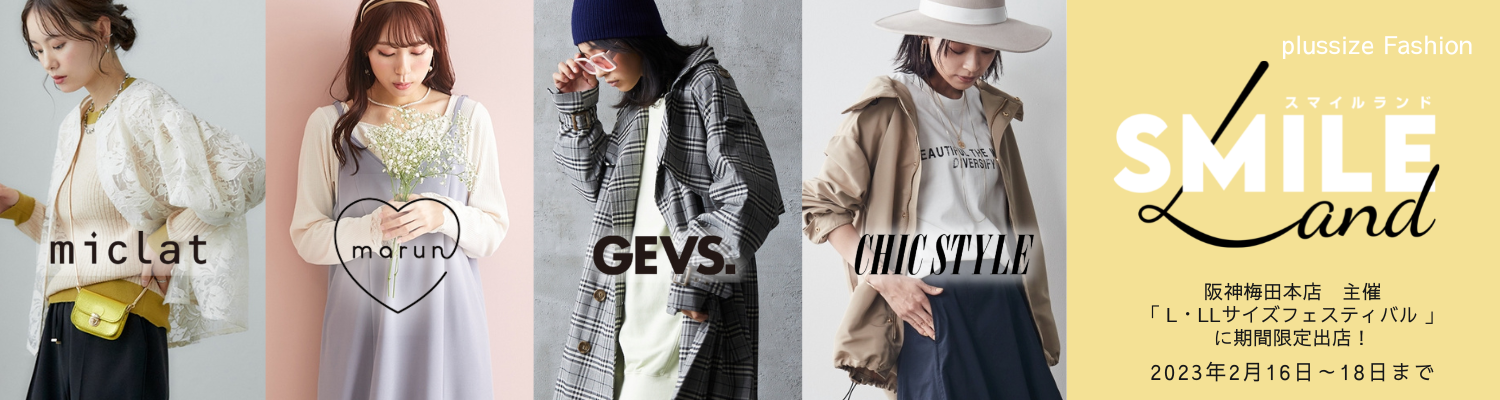 プラスサイズブランド『SMILE LAND』は、阪神梅田本店が2月16日(木)から開催する「L・LLサイズフェスティバル」に期間限定初出店します。