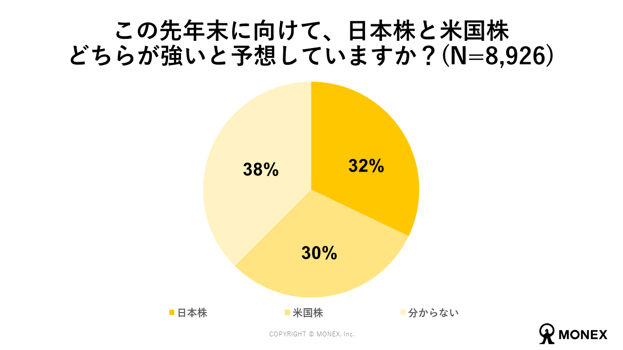 年末に向けて、日本株と米国株の予想を聞いたところ、ほぼ僅差となりました。米国株の強さが目立っていたところから、日経平均の上昇を受けて日本株に期待を寄せる個人投資家が増えてきたのではないでしょうか。