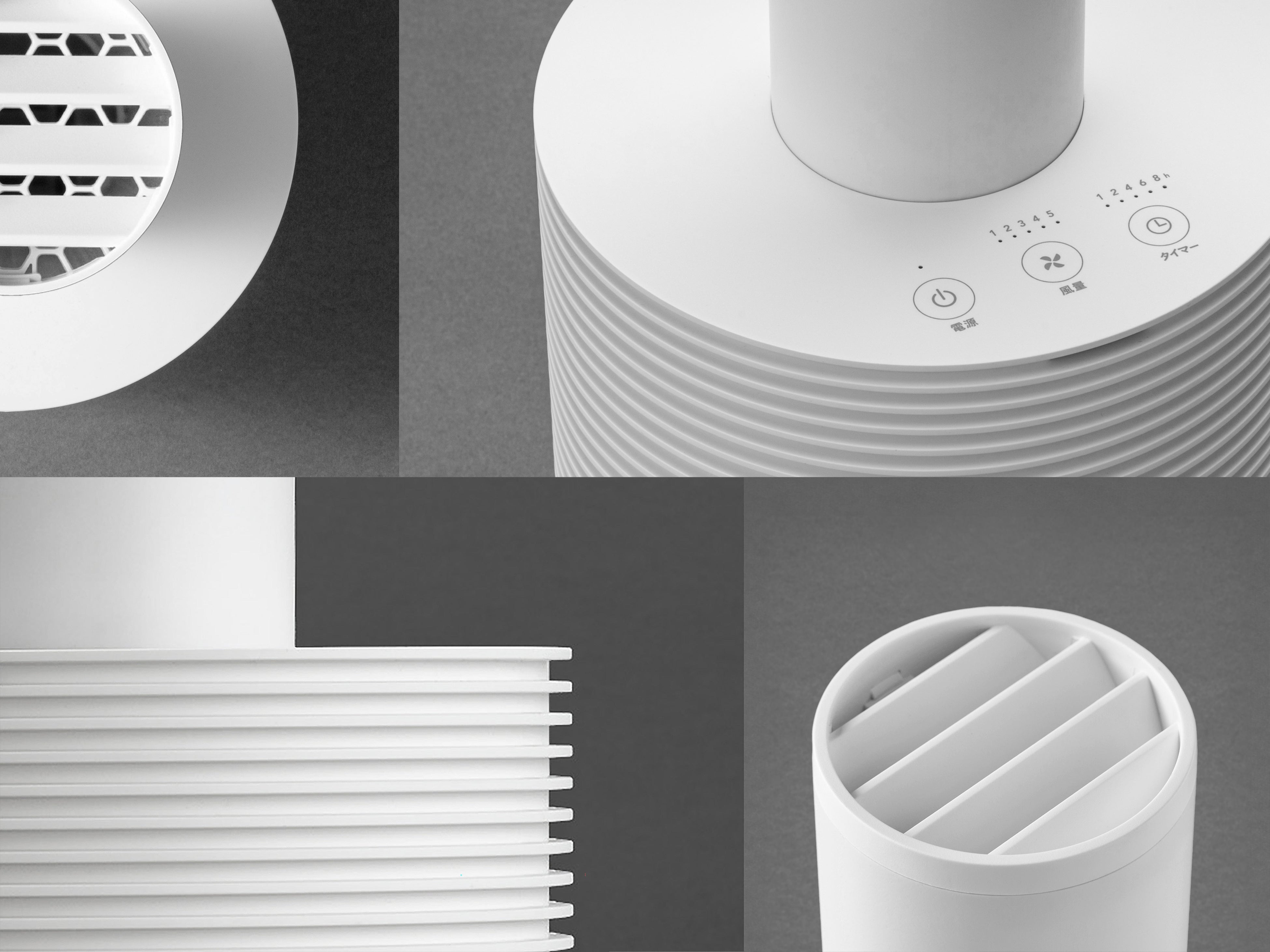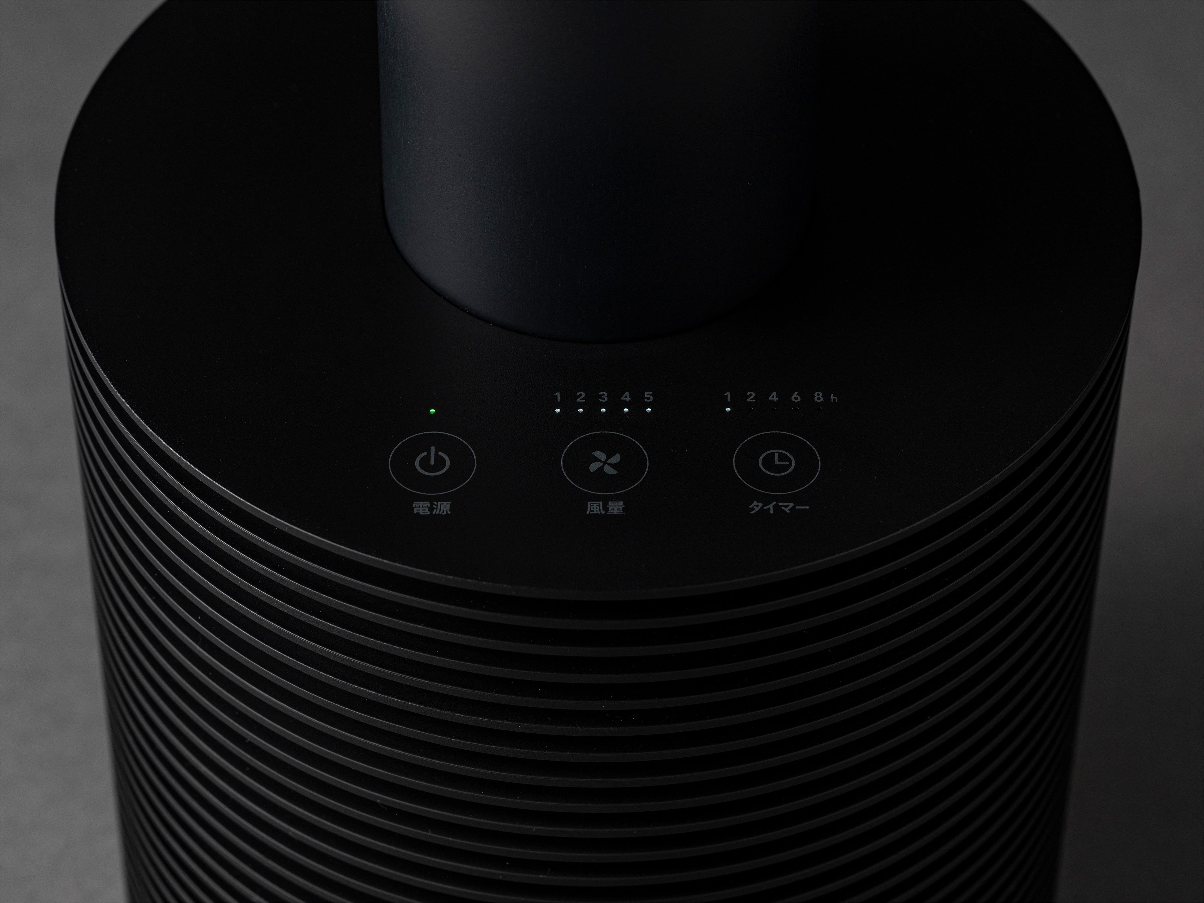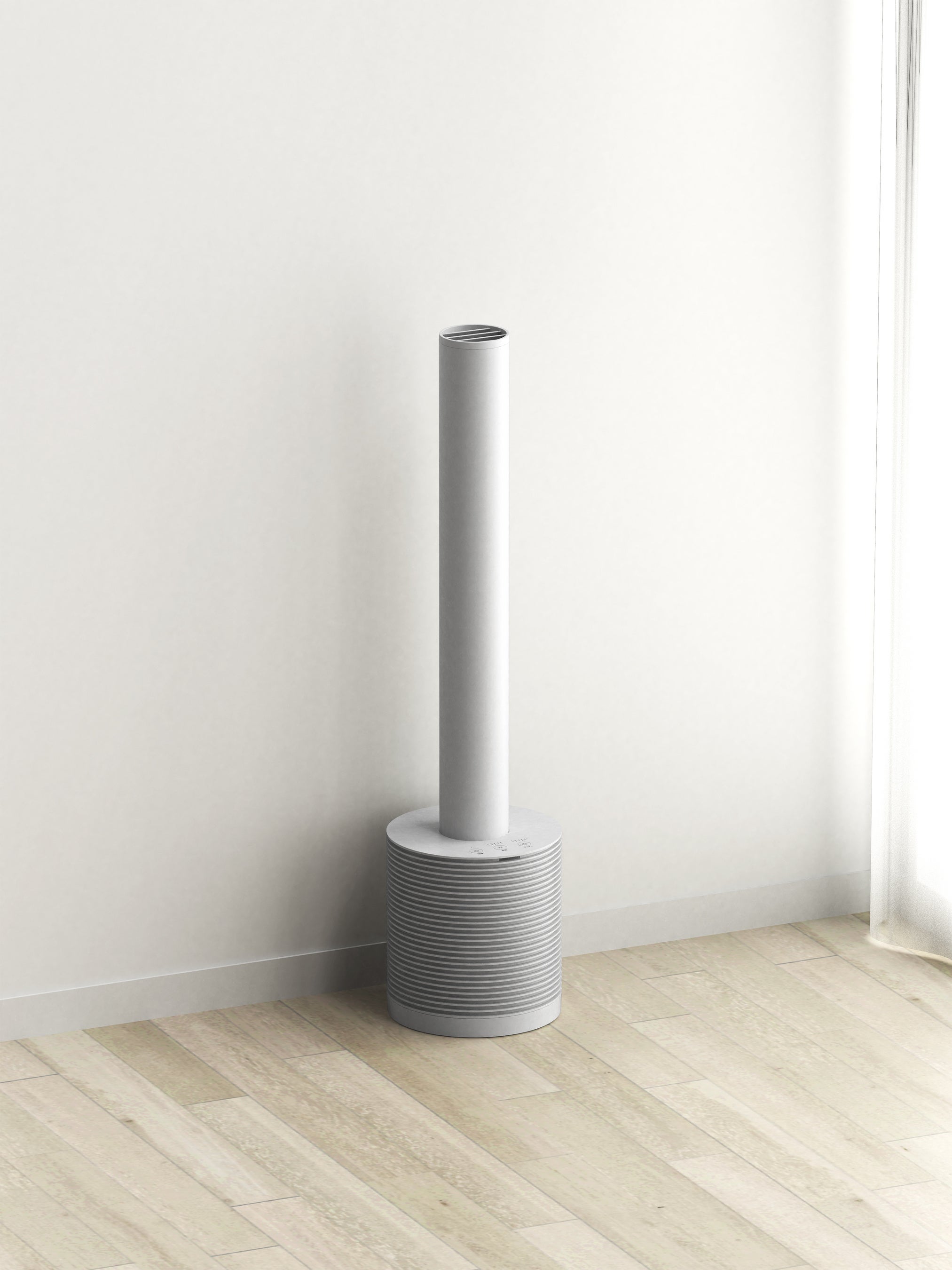 「煙突効果」で生まれる上昇気流を利用した空気循環器です。従来の扇風機やサーキュレーターは顔や体に風が直接当たる拡散型であるのに対し、縦長の円筒形状デザインにより肌に当たる風を感じることなく、体に優しく空気を循環させることができます。また、空気を取り込む土台部分には空気を清浄するHEPA フィルタ―を搭載。綺麗で心地よい空気を循環させることで、快適な室内環境を維持できます。