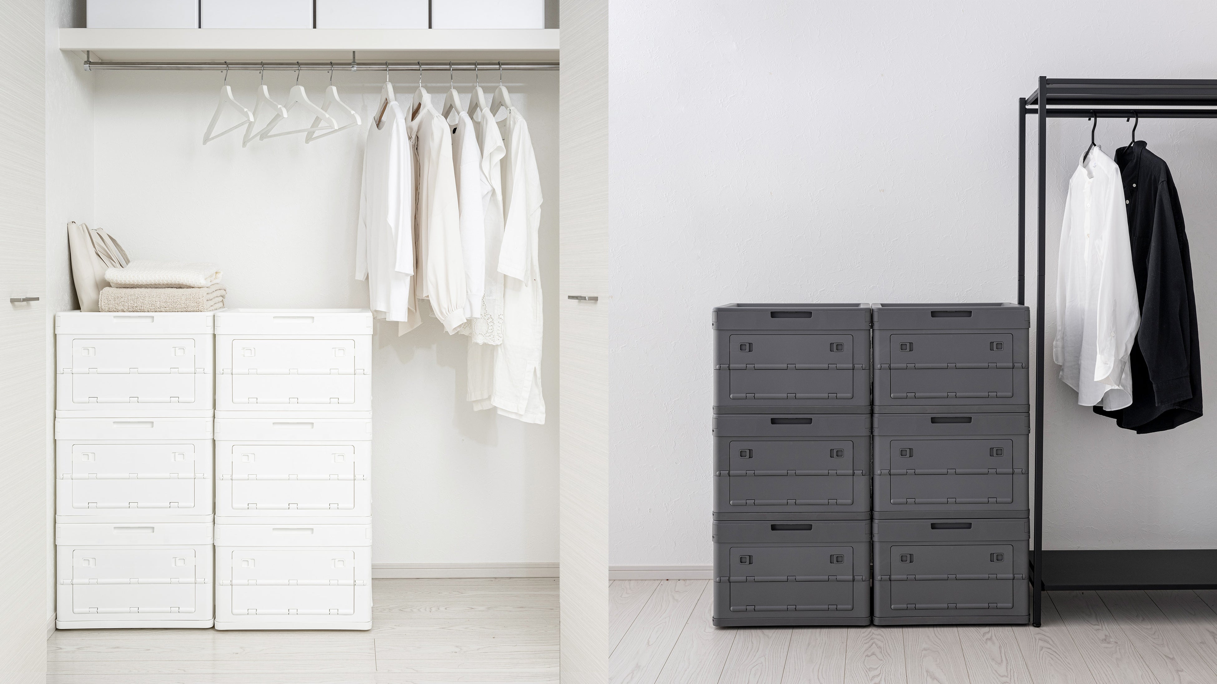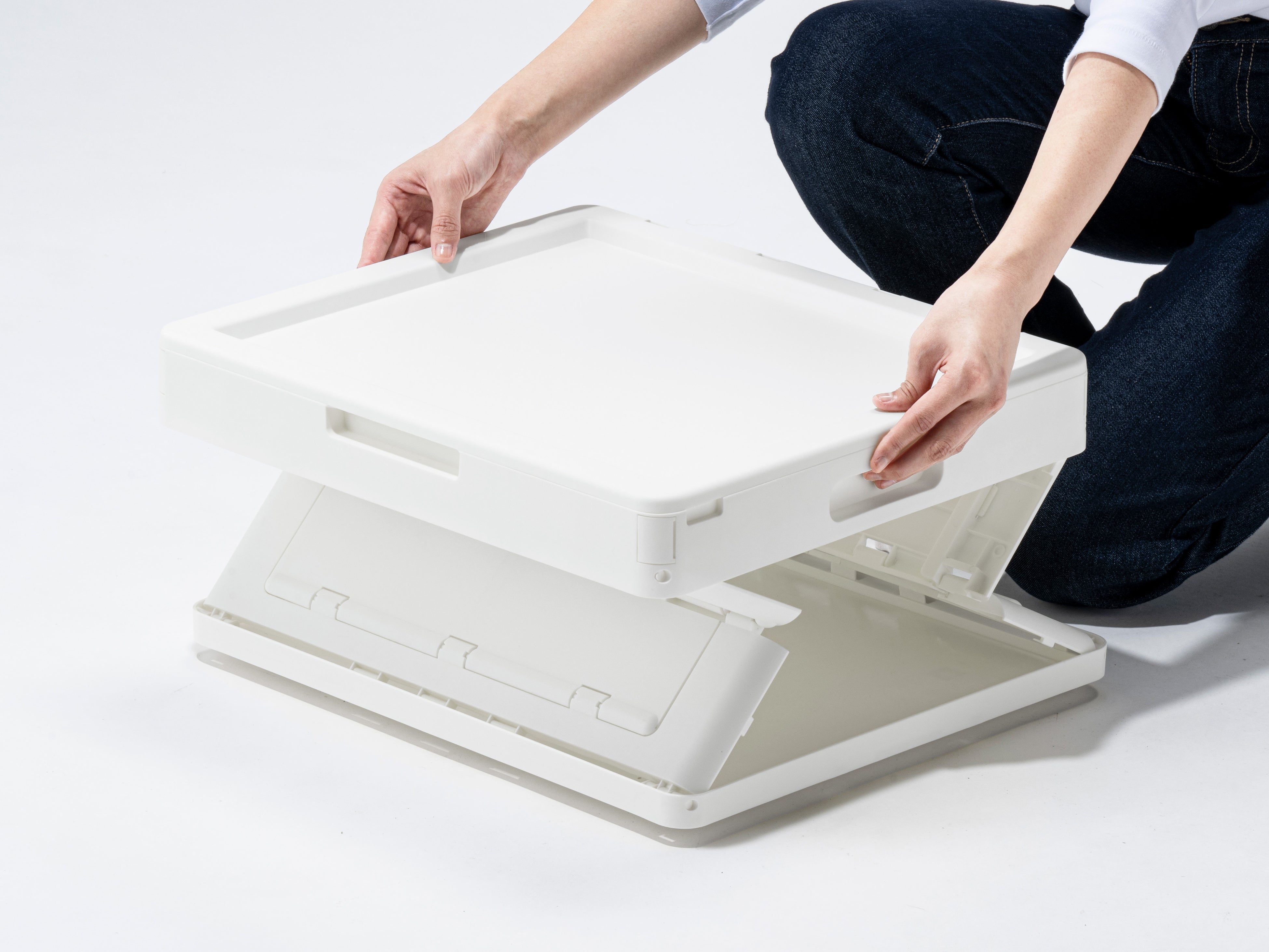「折りたたみキャリコ Cari+con」は、カインズのオリジナル収納「キャリコ Carico」シリーズの1つで、ごく一般的に使われる「コンテナ」から着想を得て開発された商品です。居住空間に溶け込むシンプルなデザインの折りたたみ収納ボックスで、上部にキャリコを重ねて使用することができます。前後・左右・天面の5か所の開口扉から取り出しが可能で、積み重ねたままでも側面扉から取り出せます。不要な時はコンパクトに折りたため、必要な時は簡単に組み立てて使える幅広いニーズに応えるデザインが特徴です。