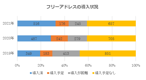森ビル株式会社が公表した「2021年 東京23区オフィスニーズに関する調査」によると、東京23区内の企業のうち32%(導入予定含め43%)がフリーアドレスを導入しています。2019年の同調査では19%(導入予定含め29%)であったことから、コロナ禍以降も導入企業が増加していることが分かります。