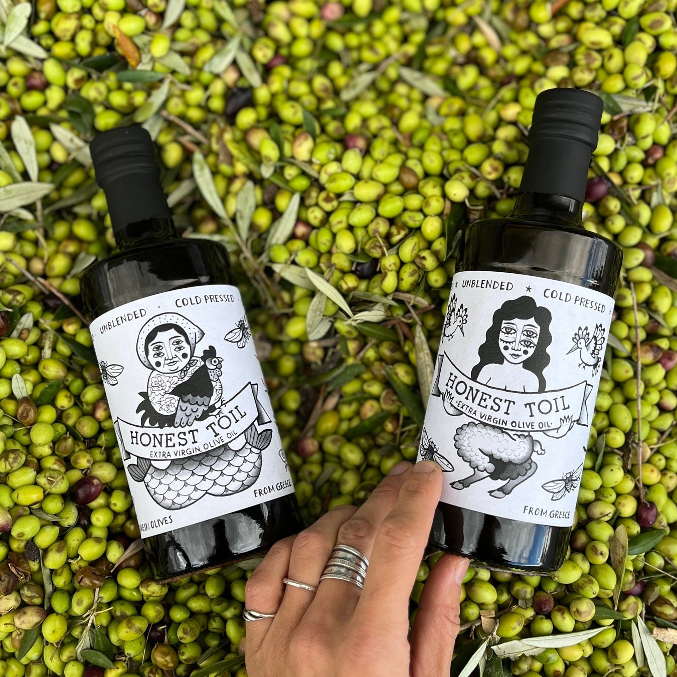 HONEST TOIL = “正直な労働”。その名の通り、イギリスからギリシャに渡ったトムとジュリの実直な二人が作るオリーブオイルは、独特なほろ苦さとピリッとした辛味が特徴。思わず“ジャケ買い”したくなるかわいい瓶で、ホームパーティーの手土産にもぴったりです。[500ml]¥4,212