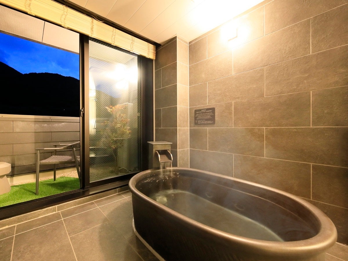 この度オープンした「湯室別館」は全15室が温泉半露天風呂付客室で、温泉は本館と同じく、美人の湯とも云われる炭酸水素塩泉と保温・保湿効果の高い塩化物泉を併せ持つ自家源泉をお愉しみいただけます。