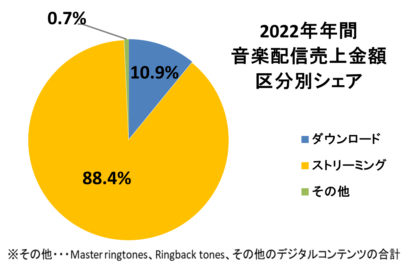 ※Master ringtonesとRingback tonesは2022年より「その他」に集計カテゴリーを変更しました。そのため、ダウンロード計数量と、合計数量の前年比に差が生じています。