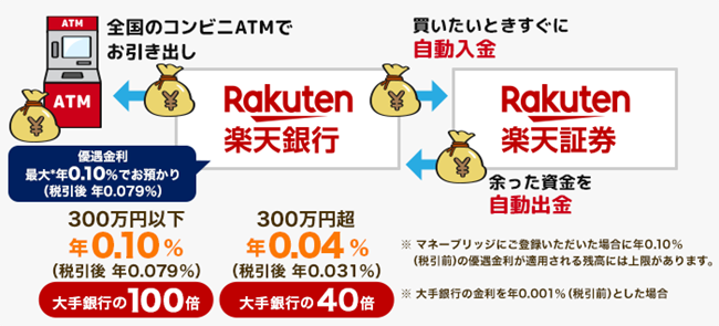 ・楽天証券でのお取引(※4)時の不足金を楽天銀行の預金残高から自動入金