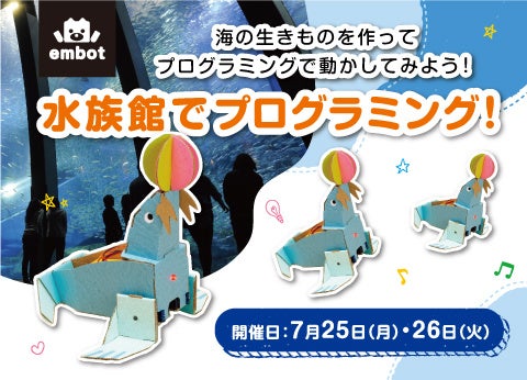 『横浜・八景島シーパラダイス』では、2022年7月25日(月)、26日(火)の2日間限定で、ダンボールで作るプログラミング教育ロボット「embot(エムボット)」を活用したプログラミングイベントを開催いたします。「embot」は、ダンボールと電子機器を用いてロボットを組み立てることで、電子工作やものづくりの基礎を学ぶことができます。また組み立てたロボットは、タブレットやスマートフォンにインストールした専用アプリを用いて、子どもでも簡単に操作することができます。