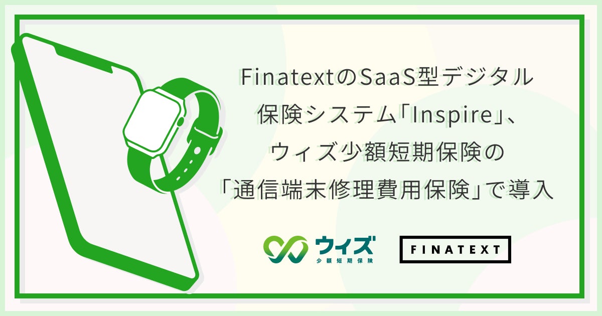 FinatextのSaaS型デジタル保険システム「Inspire」、ウィズ少額短期保険の「通信端末修理費用保険」で導入