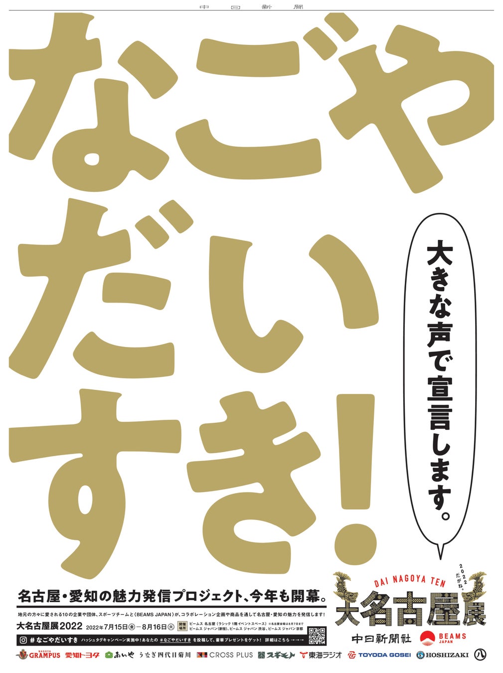 ■ 中日新聞7月14日(木)朝刊の全面広告に「大名古屋展2022」が掲載
