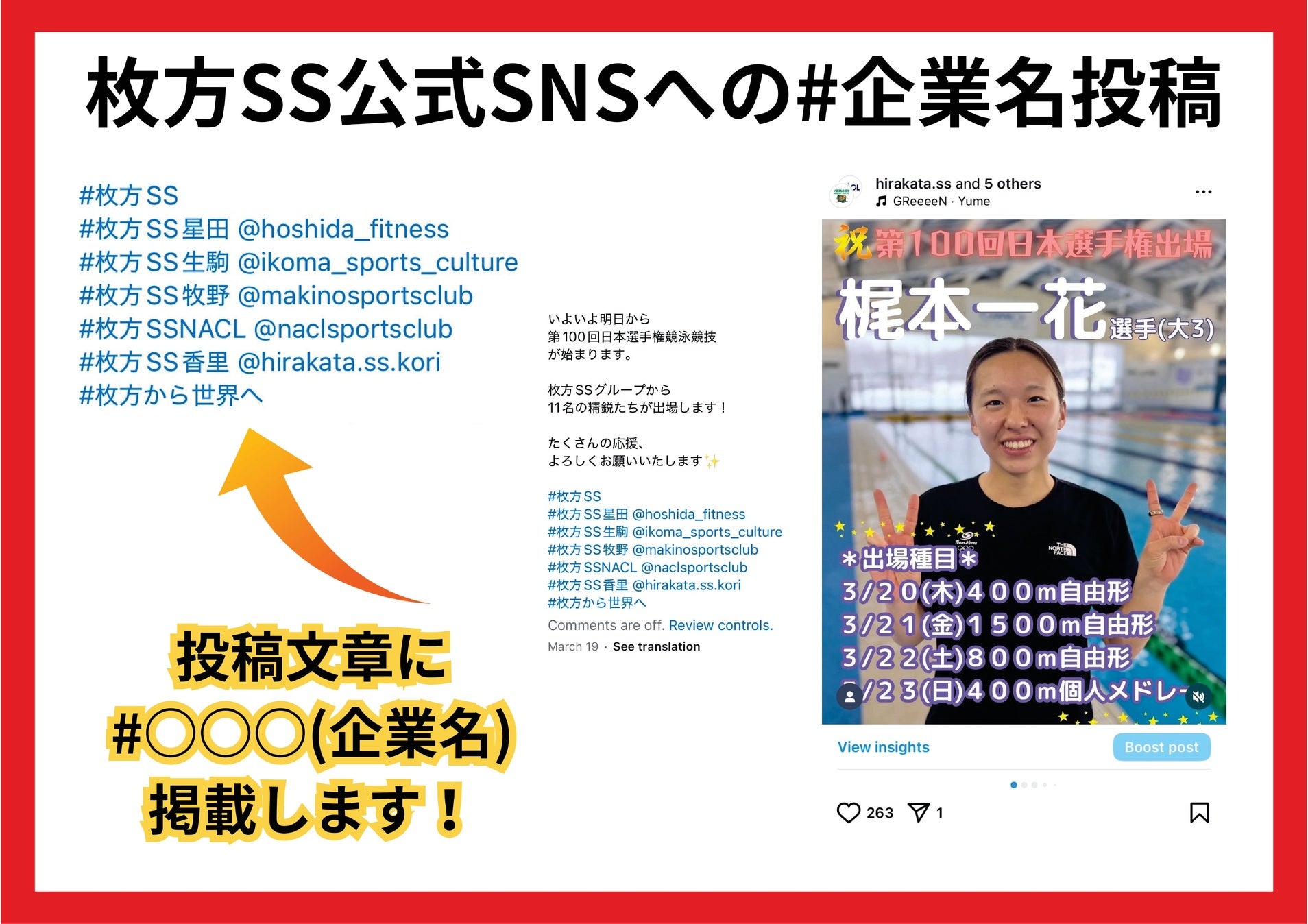 2026年3月の日本選手権期間終了まで、枚方SSの選手情報を発信する公式SNSに、企業名を掲載させていただく権利をご提供します。