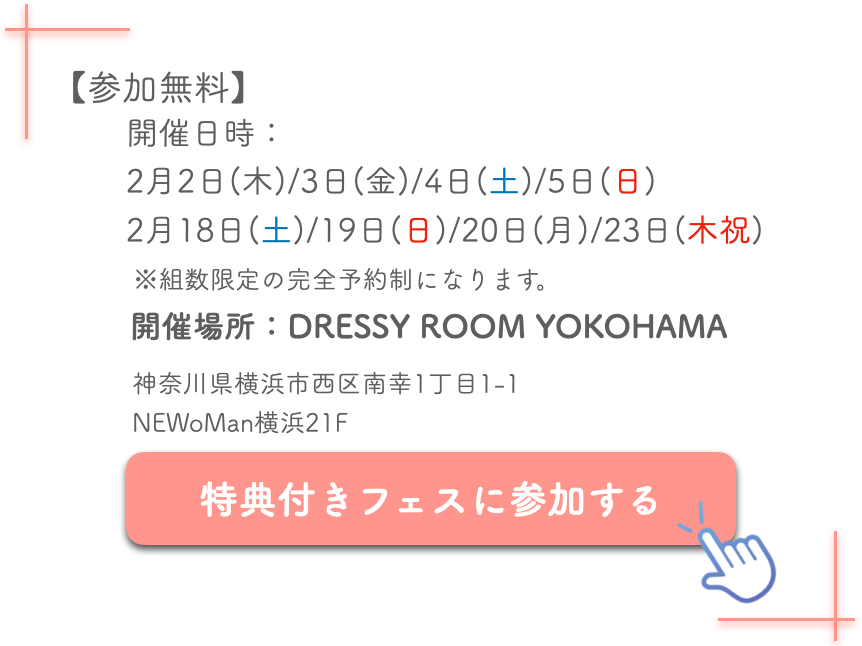 【予約フォーム】https://dressy.pla-cole.wedding/campaign/dressy_room_festa/