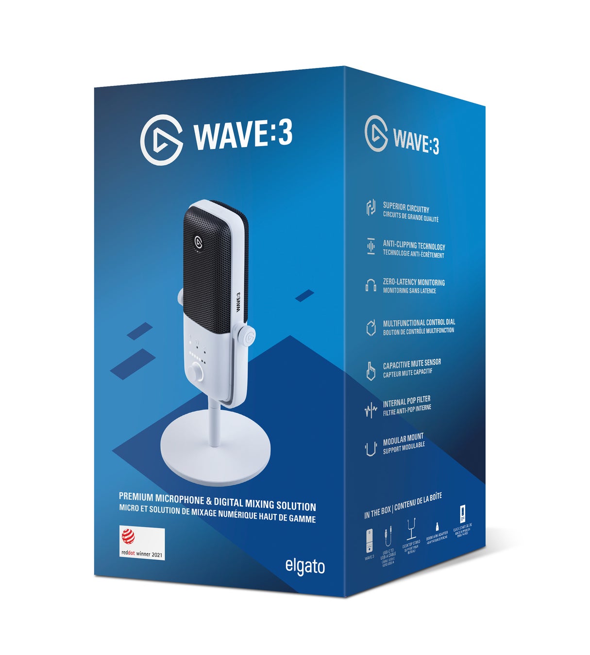 国際的なデザイン賞を受賞したエレガントなフォルムで、高いオーディオ技術のプレミアムマイク「Wave:3」に「White Edition」が登場します。「Wave:3」はプラグアンドプレイの利便性とブロードキャストレベルの電気回路を搭載したプレミアムマイクとデジタルミキシングのためのソリューションです。独自のクリップガード技術により、ひずみのないクリアな音を集音できるため、ライブ中継中にオーディオレベルを気にしたり、編集時にひずみ音の修正作業を気にする必要がありません。