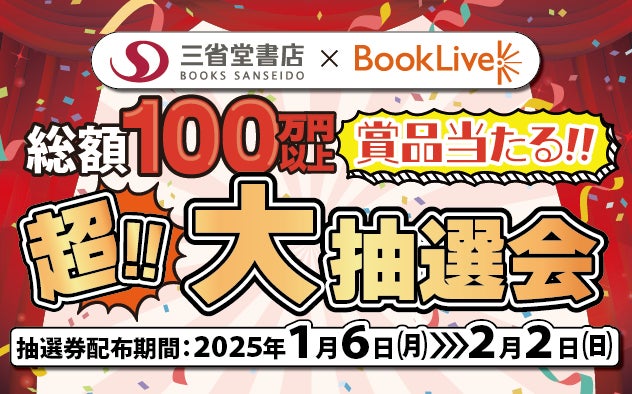 TOPPANホールディングス株式会社のグループ会社である、株式会社BookLive(本社:東京都港区・代表取締役社長:淡野 正)は、運営する総合電子書籍ストア「ブックライブ」と業務提携している三省堂書店とのコラボキャンペーンとして「2025年 超!!大抽選会」を、2025年1月6日(月)から2月2日(日)の期間、全国の三省堂書店21店舗※1で開催いたします。