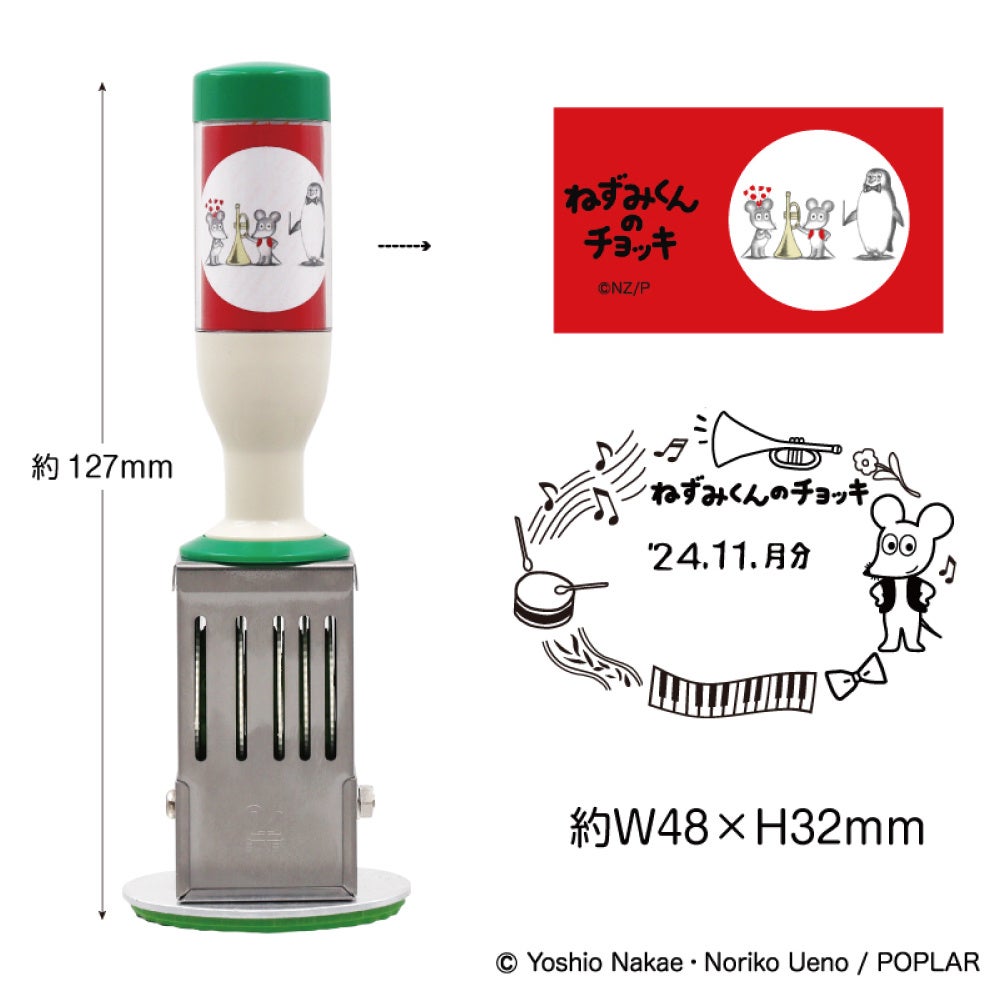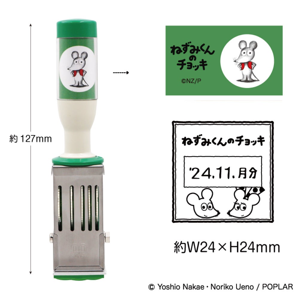 手帳やライフログにも活用できる「日付印」。今年で50周年を迎えたロングセラー絵本『ねずみくんのチョッキ』柄で新登場!