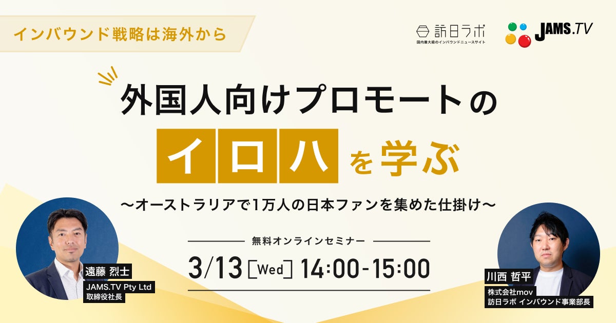 【3/13(水)共催セミナー】インバウンド戦略は海外から!外国人向けプロモートのイロハを学ぶ〜オーストラリアで1万人の日本ファンを集めた仕掛け〜