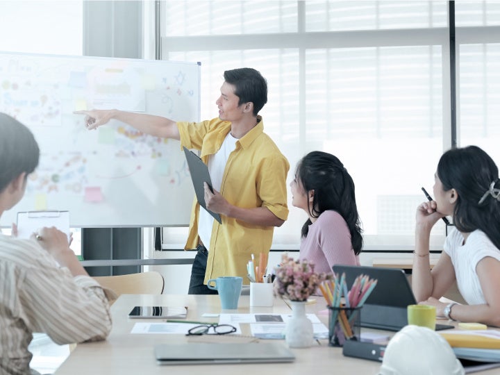 MHI SUMMER WORKSHOP(文理不問・事務系職種向け)では、脱炭素社会の実現に向けた当社製品の受注営業の業務を体験できます。「顧客からの要望」「製品の情報」などを読み込み、「顧客にどんな情報を提供するか」といった顧客提案までの過程を自ら考え、ビジネスの最前線で活躍する社員からフィードバックを受けられます。