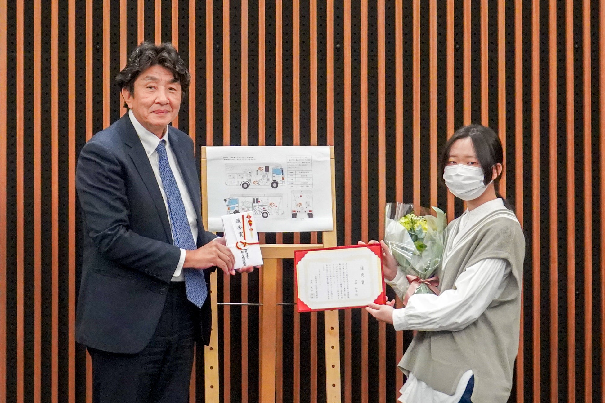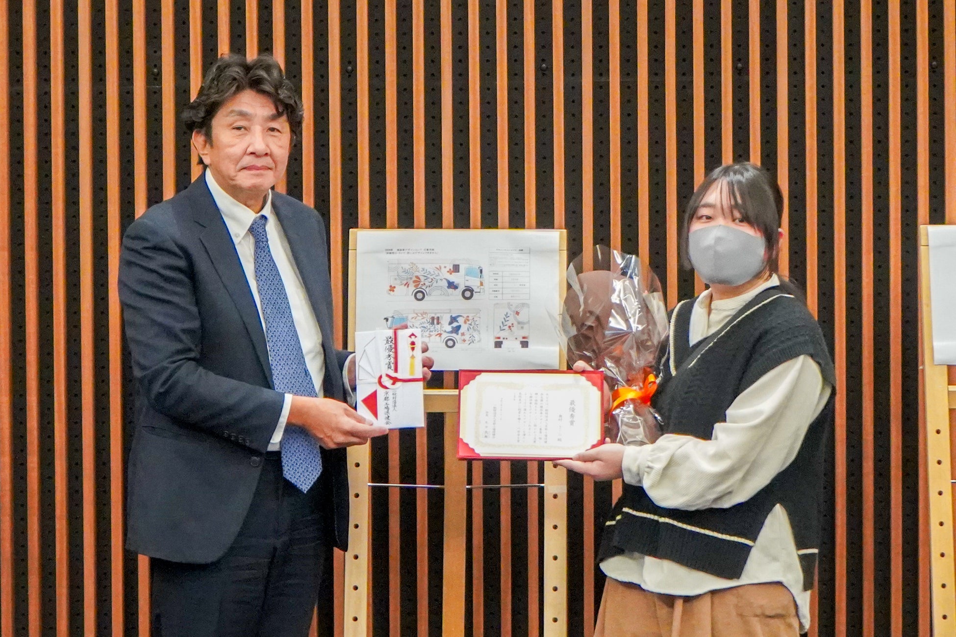 芸大生がデザインした胸部X線検診車が近畿各地で活躍予定! 京都芸術大学で検診車の外装のデザインコンペを実施し、10月31日(木)に表彰式を執り行いました