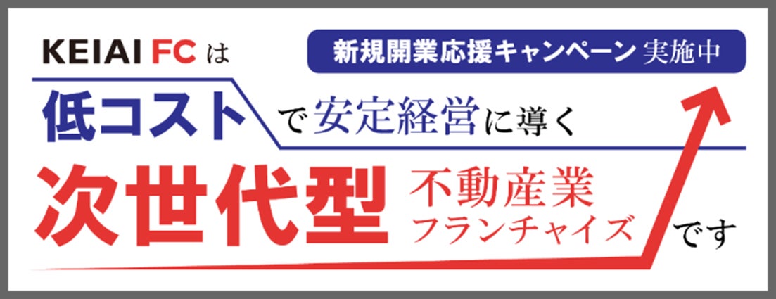 内 容:不動産売買仲介フランチャイズの運営本部を行うKEIAI FCが、『これからの時代を生き抜くための不動産業のあり方として必要な観点』と『潰れない経営を実現する方法』を伝えます。