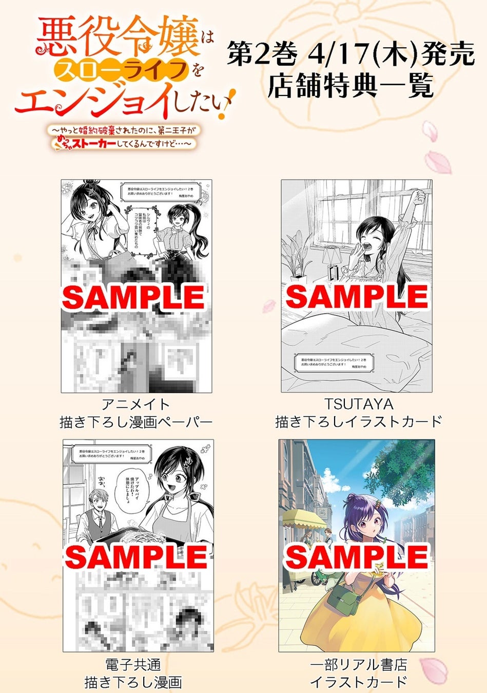書名 :悪役令嬢はスローライフをエンジョイしたい!~やっと婚約破棄されたのに、第二王子がめっちゃストーカーしてくるんですけど…~ 2