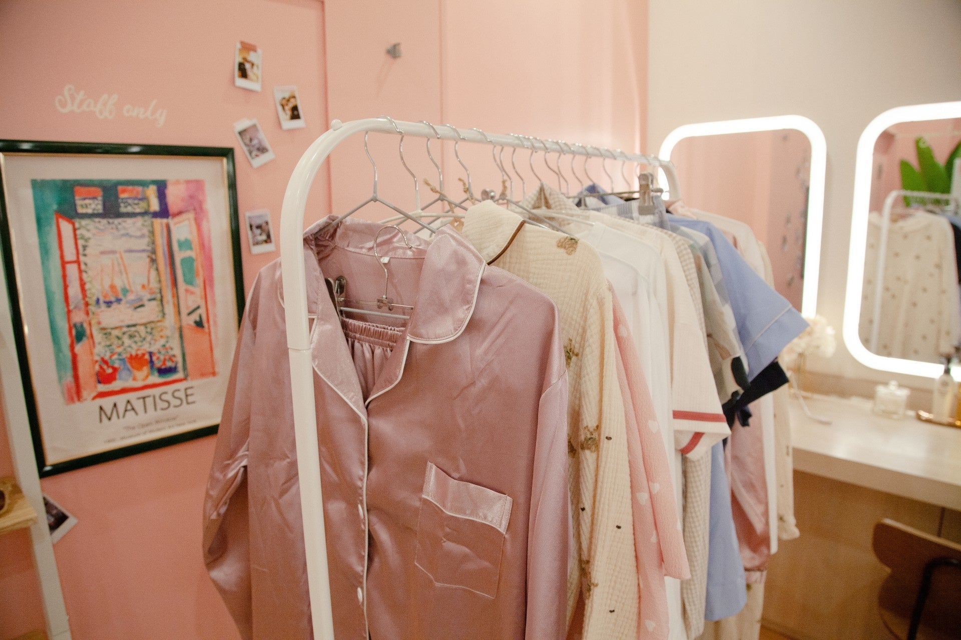 おふろcafe utataneのコンセプト「おしゃれに、ダラダラ」に添ったルームウェアやアクセサリー類100点以上のアイテムを、SHEINのラインナップよりセレクトして展示。試着もし放題です。
