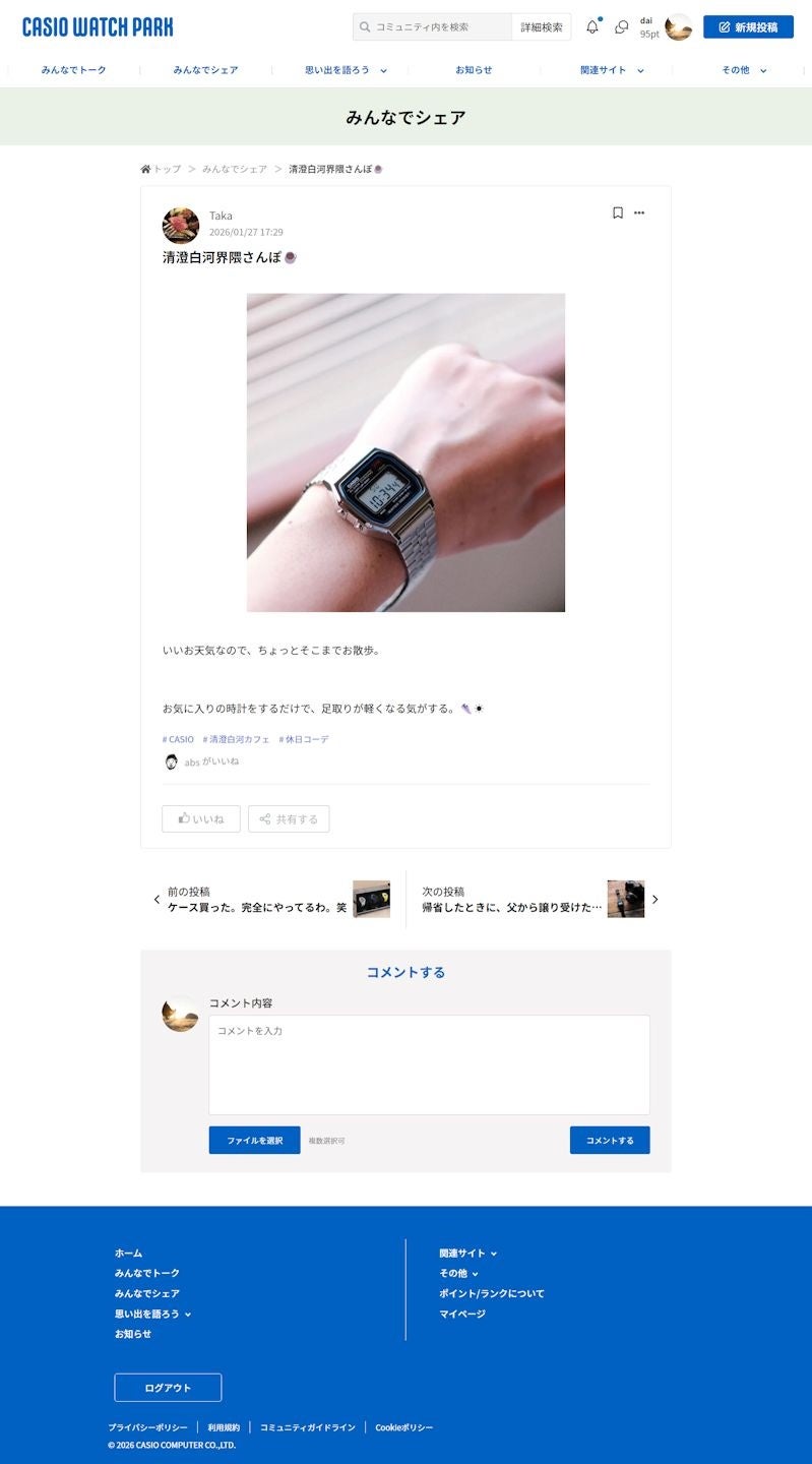 今後も「CASIO WATCH PARK」を起点に、ユーザー同士のつながりとカシオの腕時計ブランドを中心としたコミュニティの活性化を図り、新たな体験を提供できるよう取り組んでまいります。