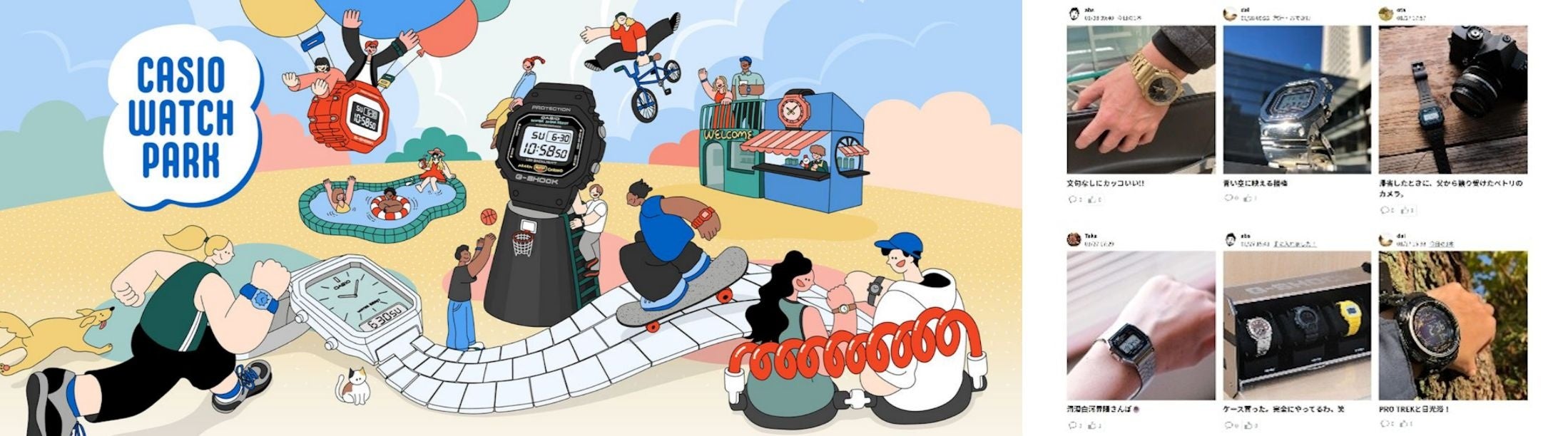 今回、新たに開設する「CASIO WATCH PARK」※1は、誰でも自由に時計に関する投稿ができるユーザー参加型のファンコミュニティサイトです。カシオの腕時計を愛用するユーザー同士がつながり、時計にまつわる体験や想いを共有し合うことで、新しい発見や楽しみ方に出会える場を目指します。