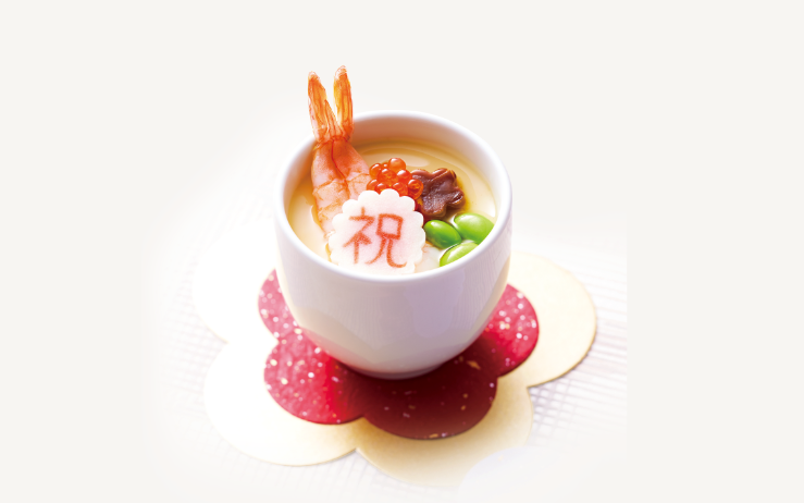 「ゆず庵名物 茶碗蒸し」に、いくら、海老、枝豆などをあしらった贅沢な茶碗蒸しをお一人様おひとつご提供いたします。七五三を迎えるお子様の健やかな成長を願って、幸せなお祝いのひとときを、ぜひ『ゆず庵』でお過ごしください。