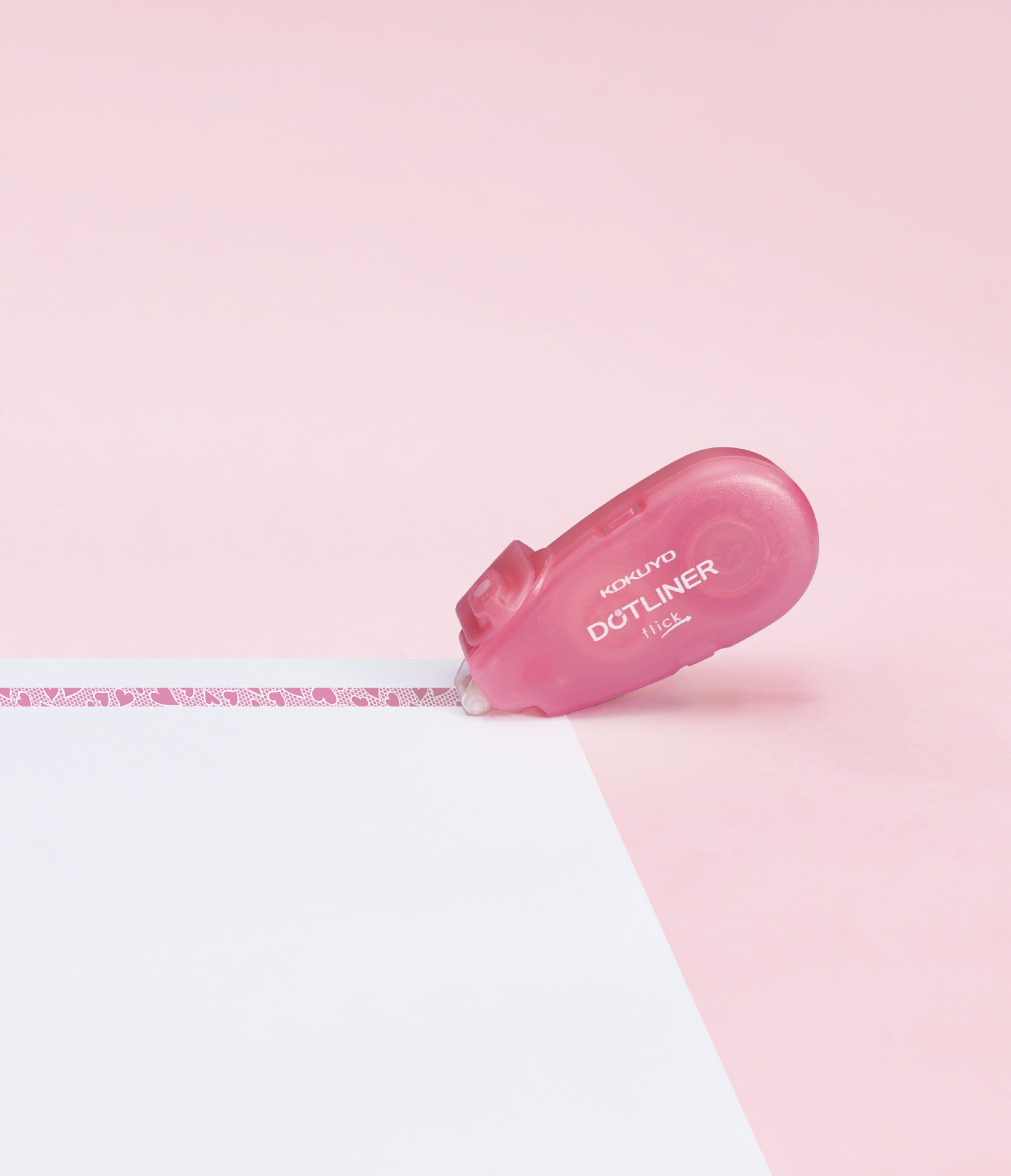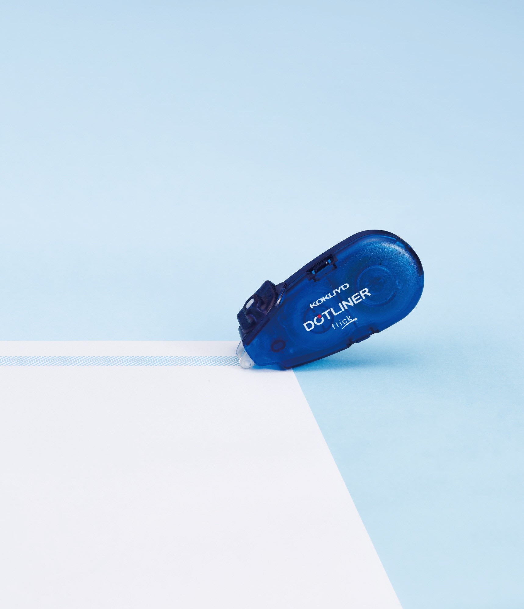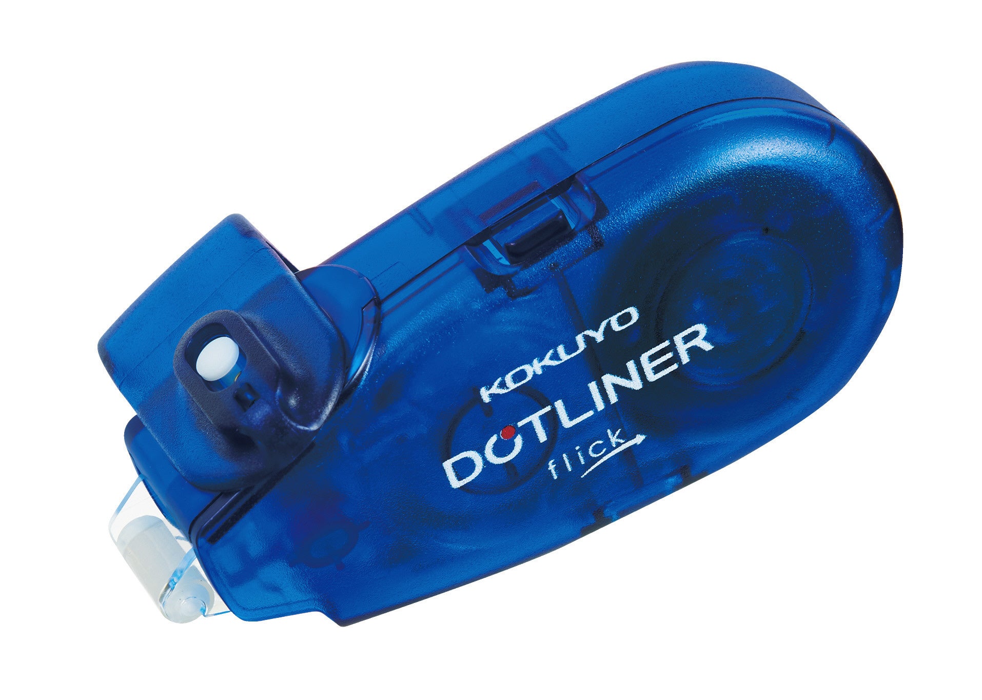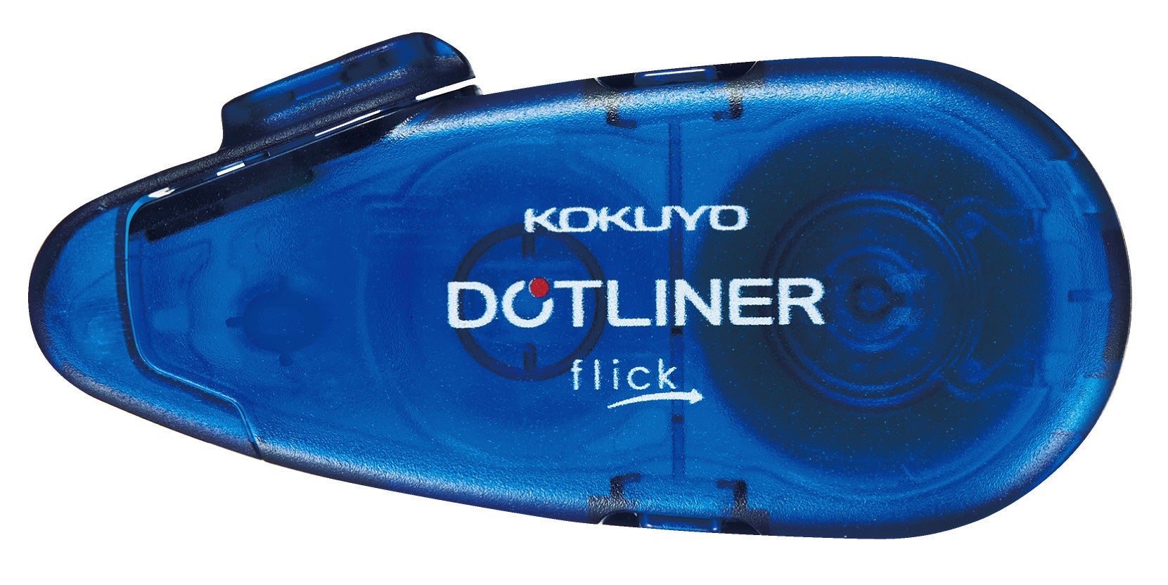 キャップにバネを内蔵した新機構“フリックキャップ”と、つめ替えタイプのテープのりとして、業界最小クラスの本体サイズが特長のドットライナーです。