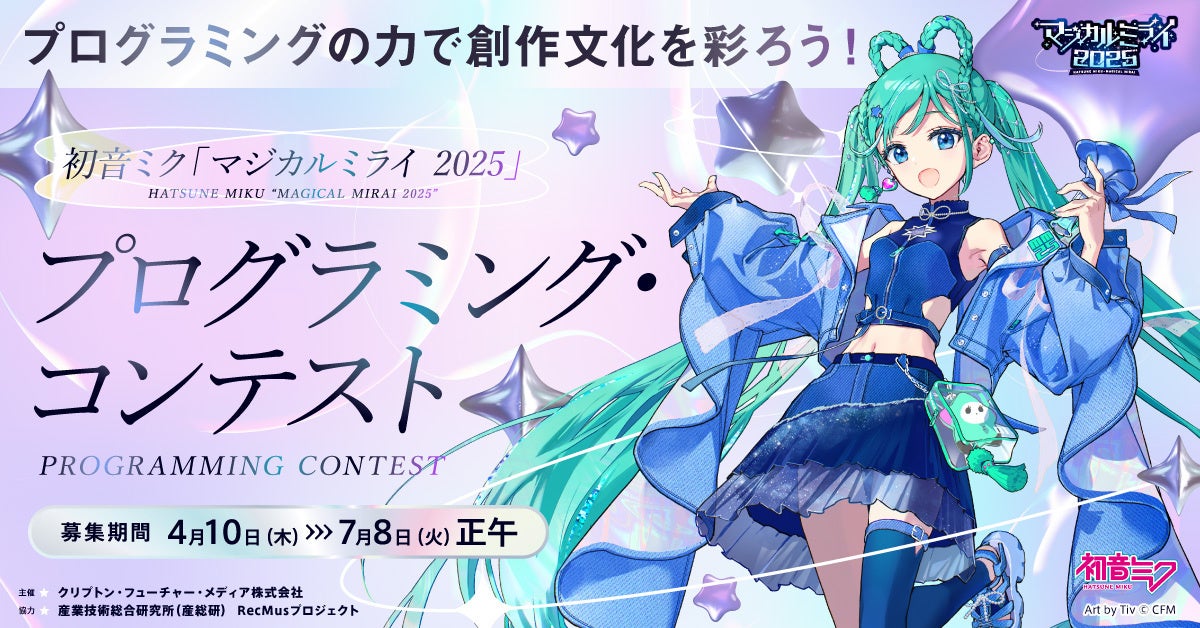 クリプトン・フューチャー・メディア株式会社(本社:北海道札幌市、代表取締役:伊藤博之、以下「クリプトン」)は、国立研究開発法人産業技術総合研究所(以下「産総研」)の協力の下、イベント『初音ミク「マジカルミライ 2025」』(以下「マジカルミライ 2025」)の一環として、プログラミング・コンテストを開催いたします。募集する作品は、本コンテストの対象楽曲にあわせて動くWebアプリケーション(リリックアプリ)です。2025年7月8日(火)正午まで募集いたしますので、プログラミングにご興味のある方は、ぜひこの機会にご参加ください。