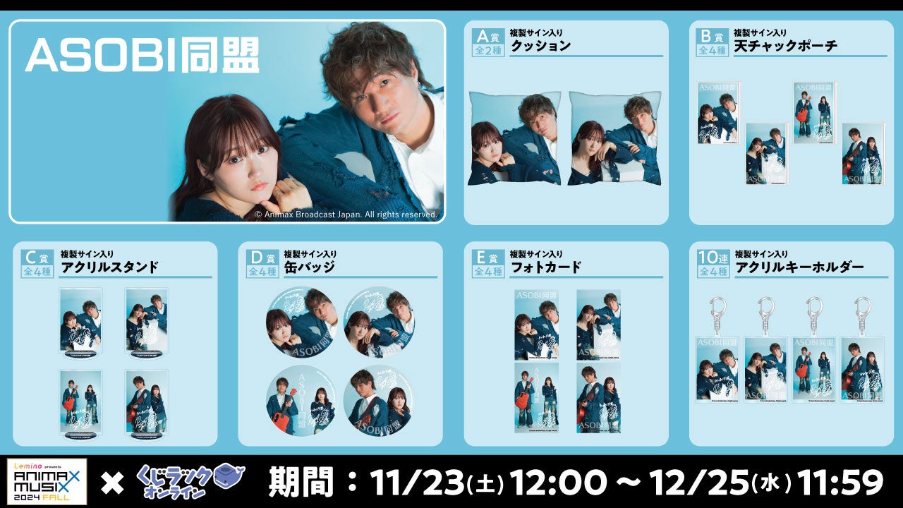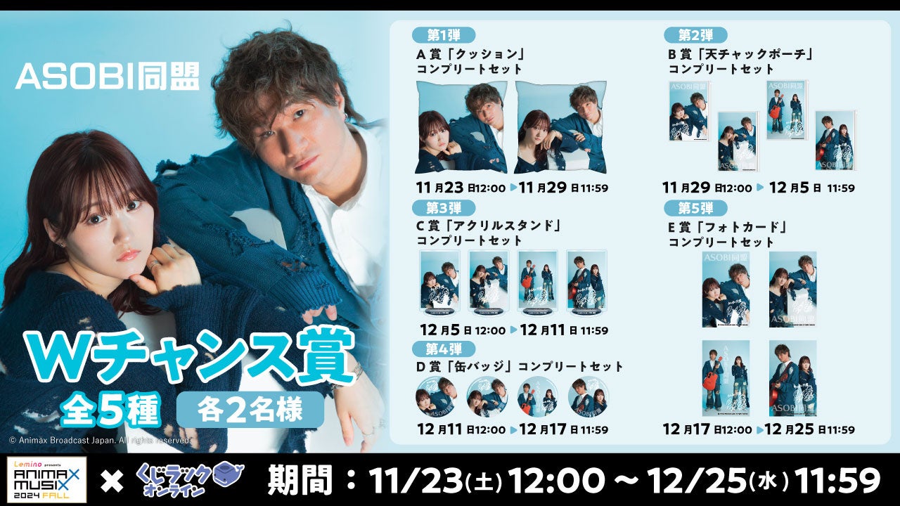 カルチュア・エンタテインメント株式会社は、「Lemino presents ANIMAX MUSIX 2024 FALL」×「くじラックオンライン」タイアップ企画として、アーティスト『ASOBI同盟』とのコラボを実施いたします。