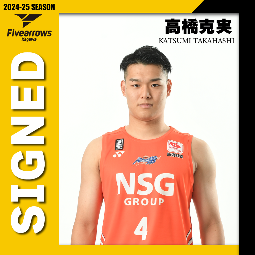 このたび香川ファイブアローズでは、高橋克実選手との2024-25シーズンの選手契約が決まりましたので、お知らせいたします。