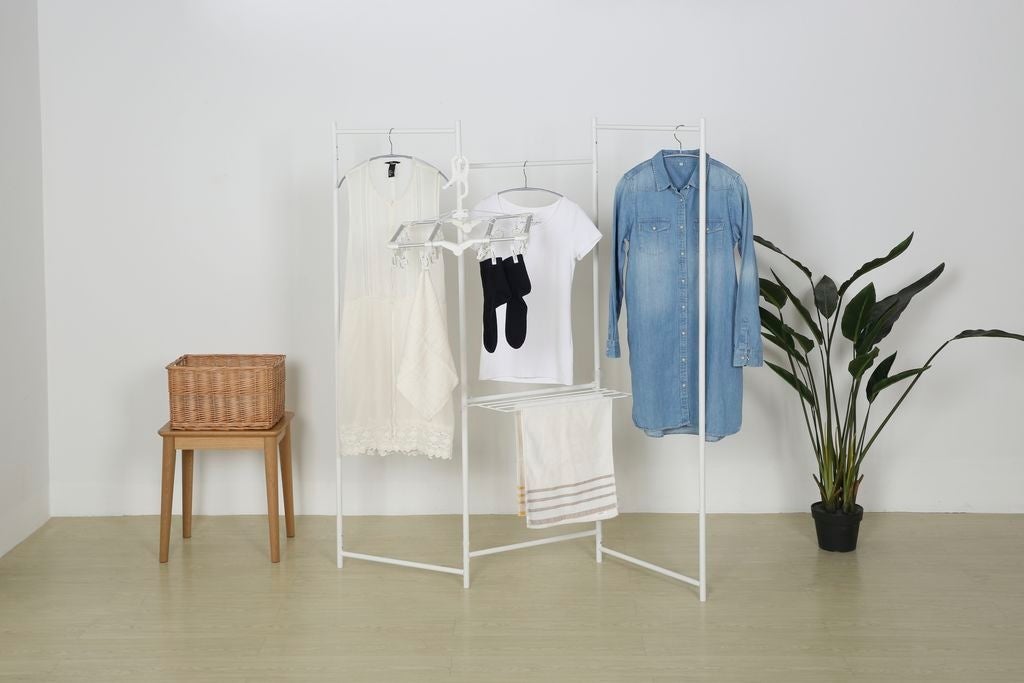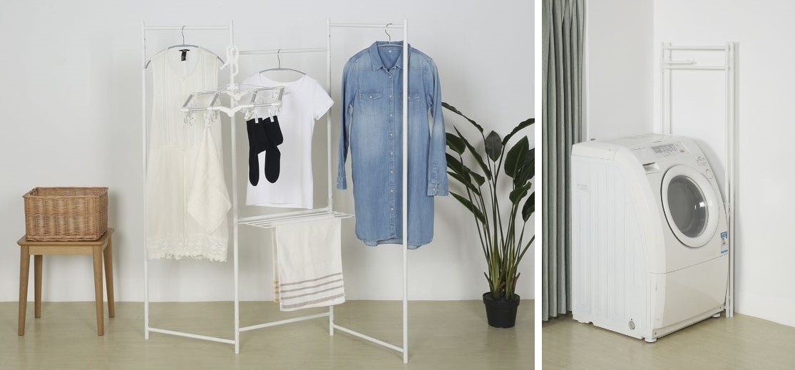 折りたたみ時の幅は約5cm!たっぷり干せて、たためば省スペースで収納していただける、室内物干しも新発売しました。ぜひあわせてお買い求めください。