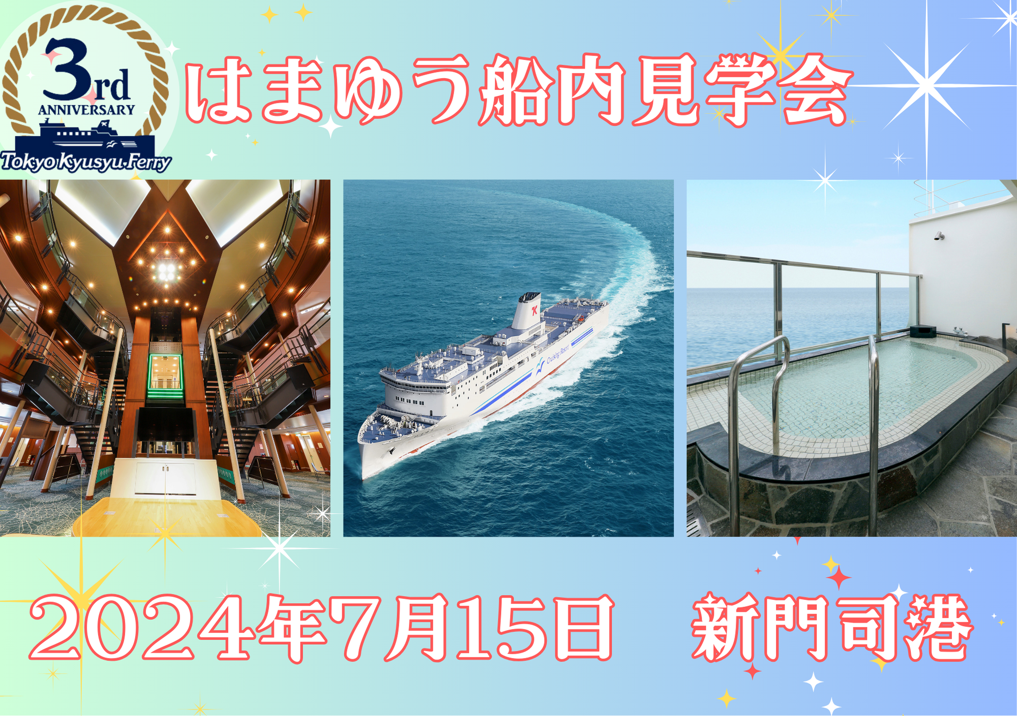 おかげさまで3周年!海の日イベントとして、新門司港で船内見学会を行います