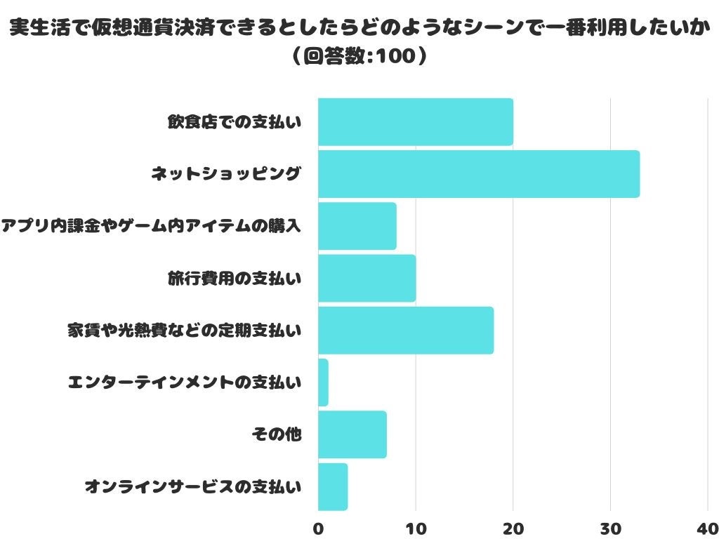 【調査レポート】実生活のあらゆるシーンで仮想通貨決済できるとしたらどのようなシーンで一番利用したい?1位は「ネットショッピング」!