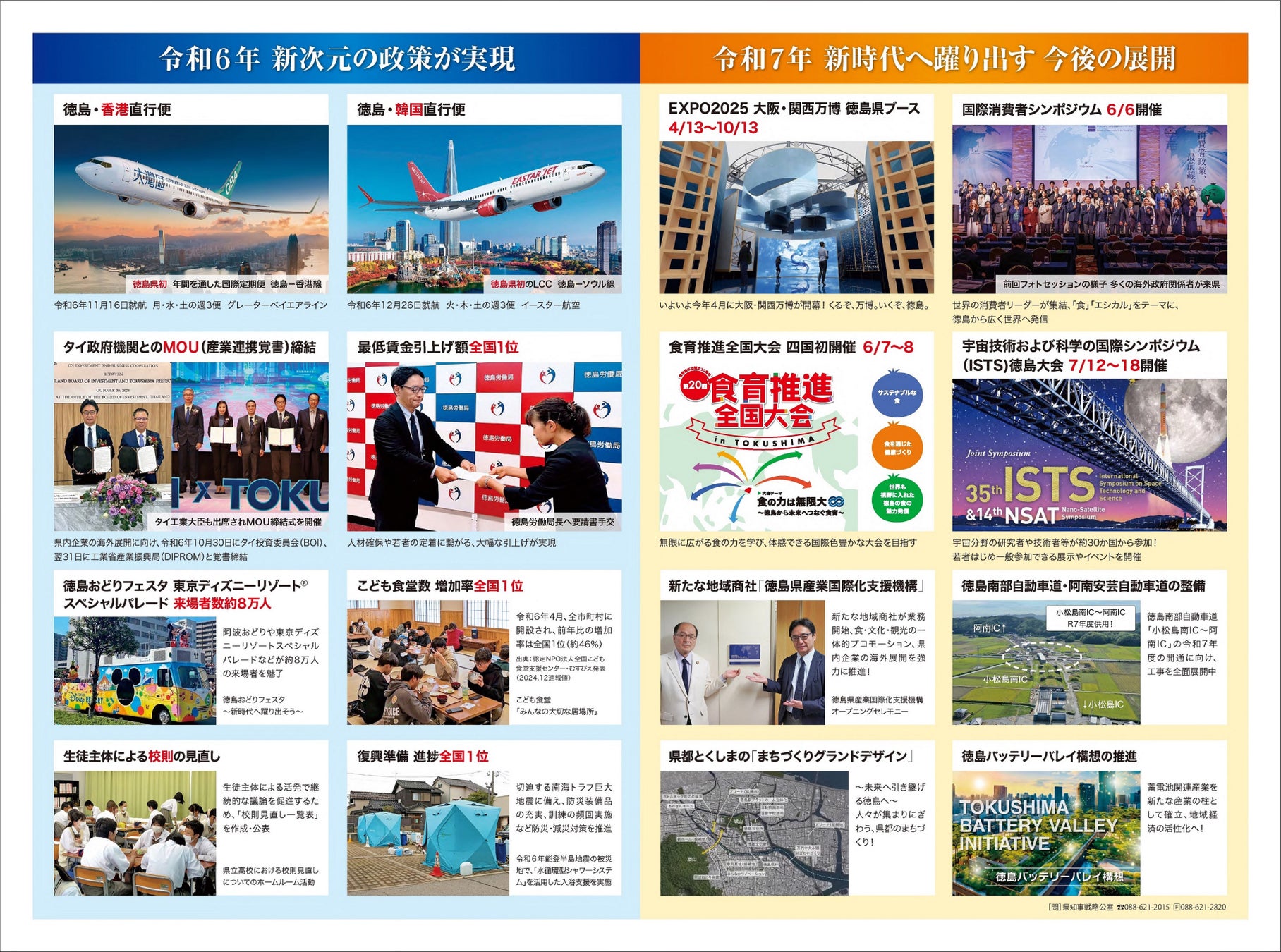 令和6年、徳島阿波おどり空港発着の国際定期便の就航やタイ政府機関とのMOU締結など様々な政策が実現しました。令和7年も新時代へ躍り出す政策を展開していきます!