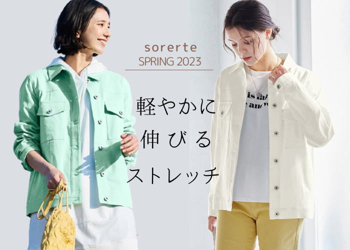 「スマイルランド」カタログ掲載の中からご紹介するのは、「軽やかに伸びる春色アウター」です。