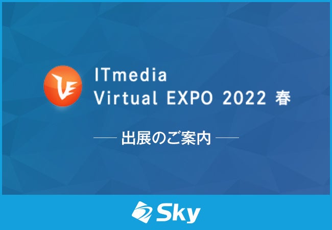 Sky株式会社は、2022年 2月15日(火)~ 3月18日(金)、国内最大級のバーチャル展示会「ITmedia Virtual EXPO 2022 春」に出展いたします。